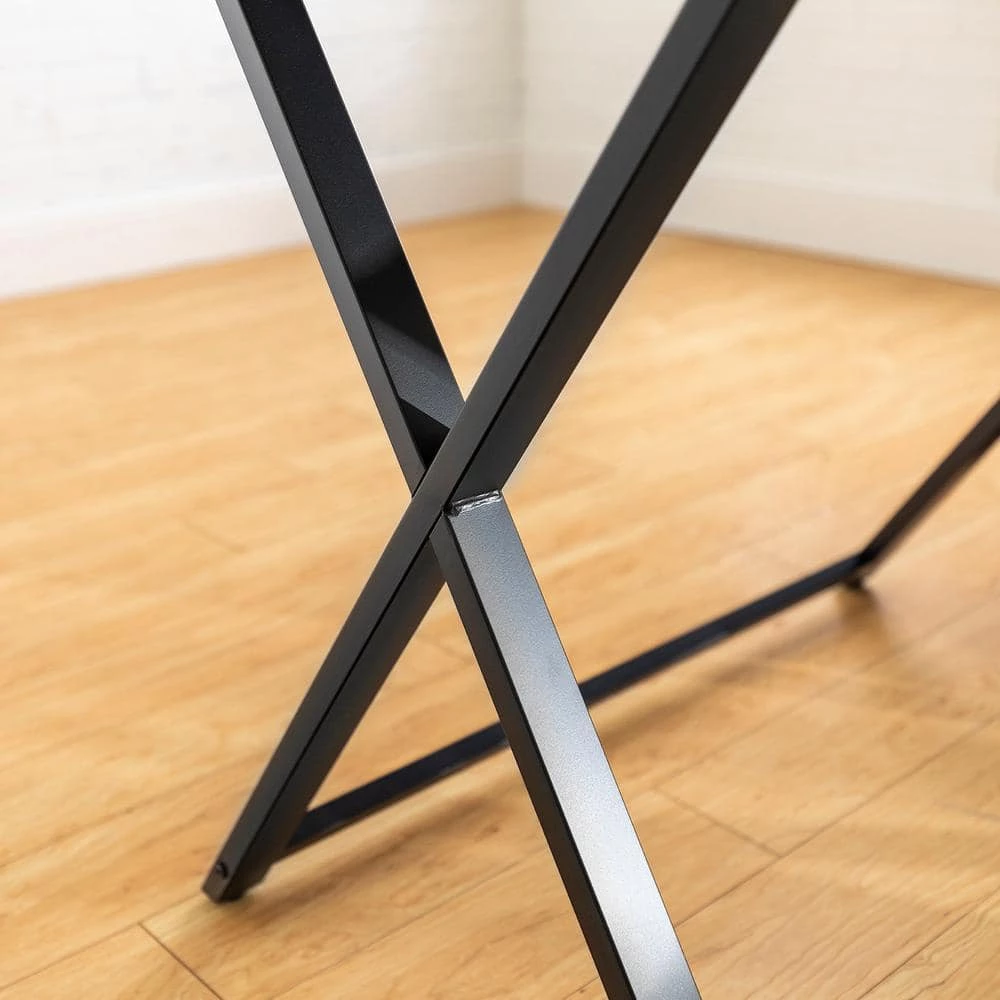 Just because you are a creative working from home does not mean that you don’t deserve to treat yourself to a professional, mature workspace. Enhance your office or craft room with this set of contemporary desks. Their X-frame, metal legs will draw clients in as soon as they walk through the door. With a minimalist, simple design, these computer desks will set you up for success in your new business adventures or gaming career. And with a set of two L-shaped, corner desks, you can either hire the intern that will ease the busy season or create private spaces for yourself and your partner to work or makes room for your large computer system.