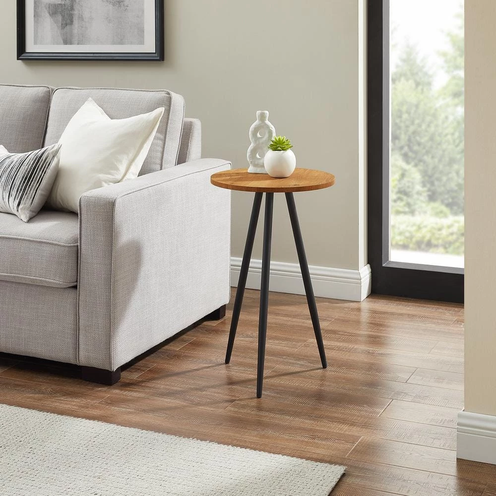 Elegantly enhance your space with this sleek side table. With its high-gloss, UV-coated tabletop, this accent table is moisture resistant and ready to host your nightcaps and party cocktails along with your favorite decor. The metal base lends a luxe look while a simple silhouette boasts contemporary intrigue and a small-space-friendly shape. So whether it’s sitting couchside, in your personal sanctuary, or accenting your home office, this versatile piece is an effortless ode to your great style.