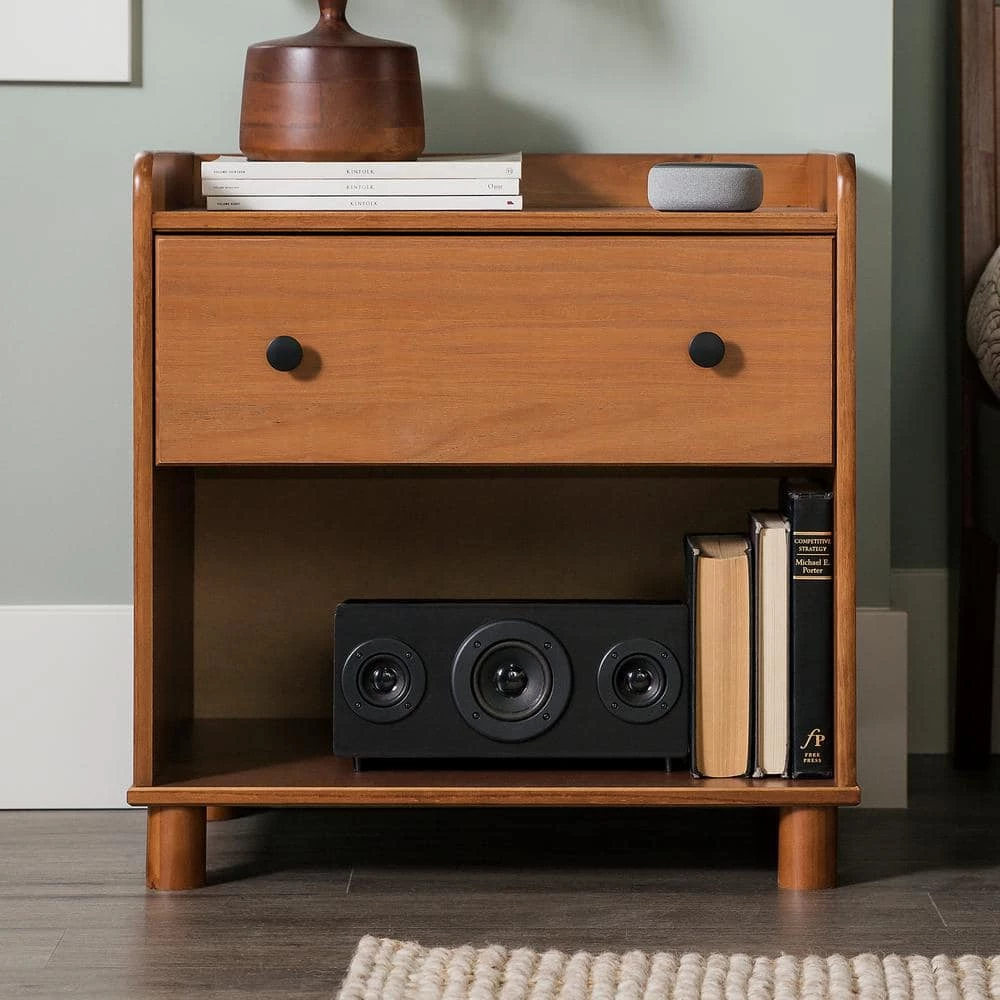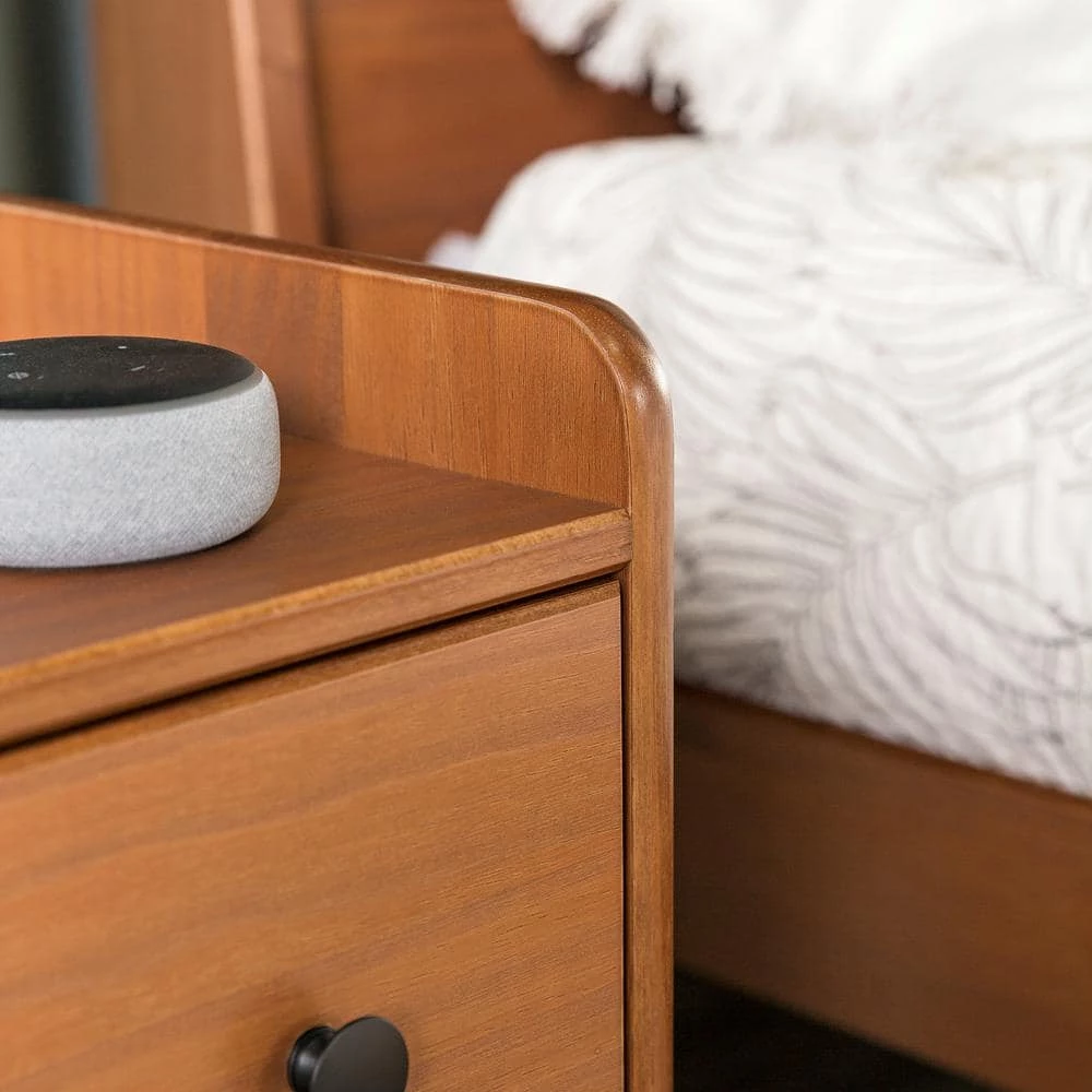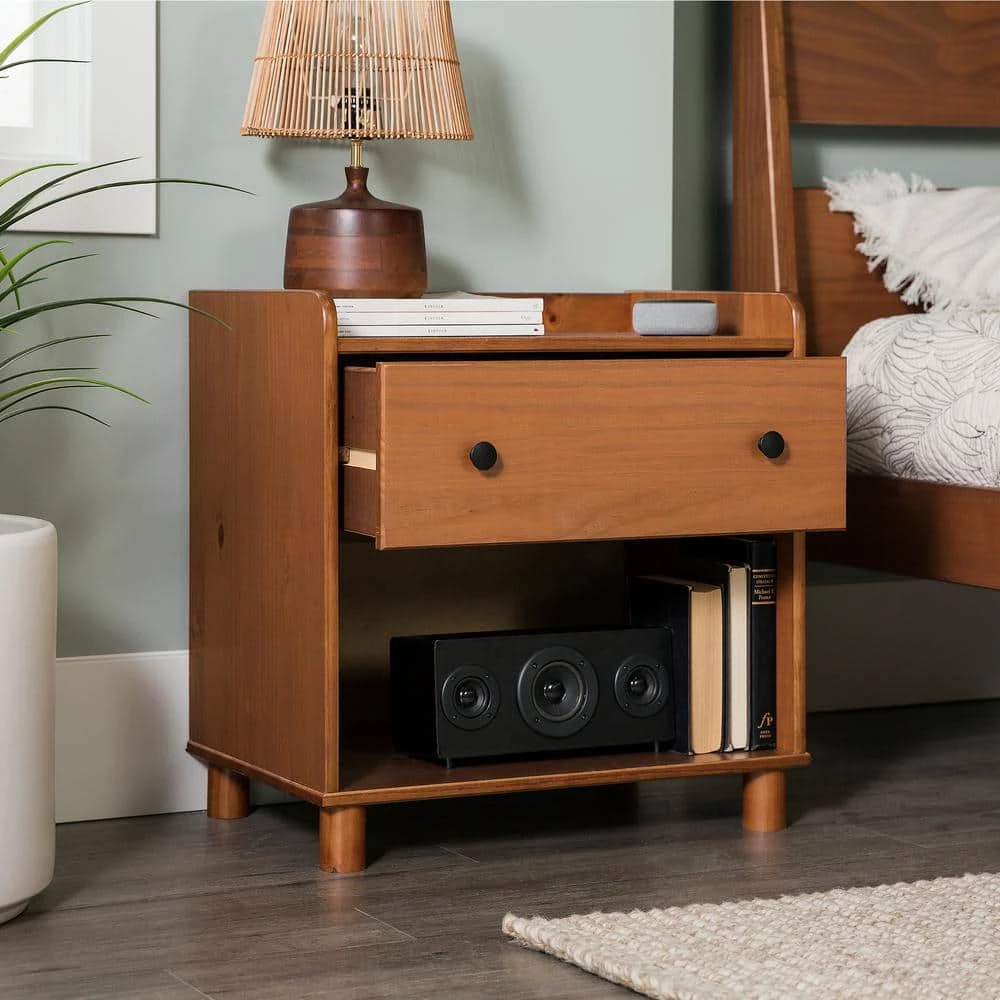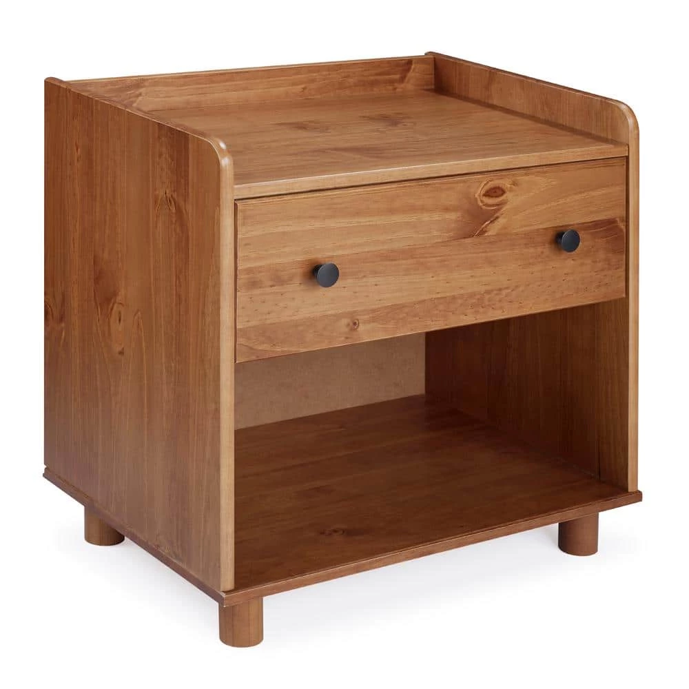 You turn off the light and slowly close the door, trying to sneak quietly away. And then you’re child cries for you. “I’m afraid of the dark.” You sigh, knowing this could take a while. Unless. You walk back in the room and pull a small nightlight out of the single drawer that glides easily open on dovetail runners. You place the lamp on the modern bedside table that brings a nostalgic air to the room. The solid pine wood nightstand is a classic design and made to last, so when your child is old enough to brave the night, they can easily reach over the tray tabletop and turn off the light themselves.