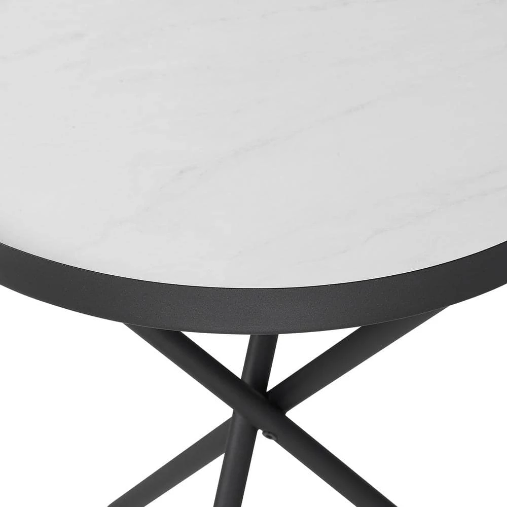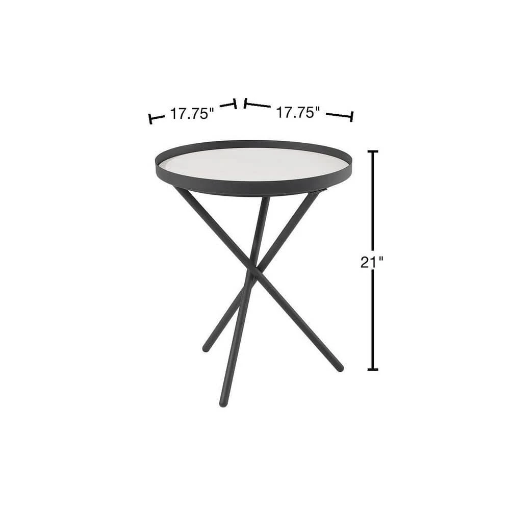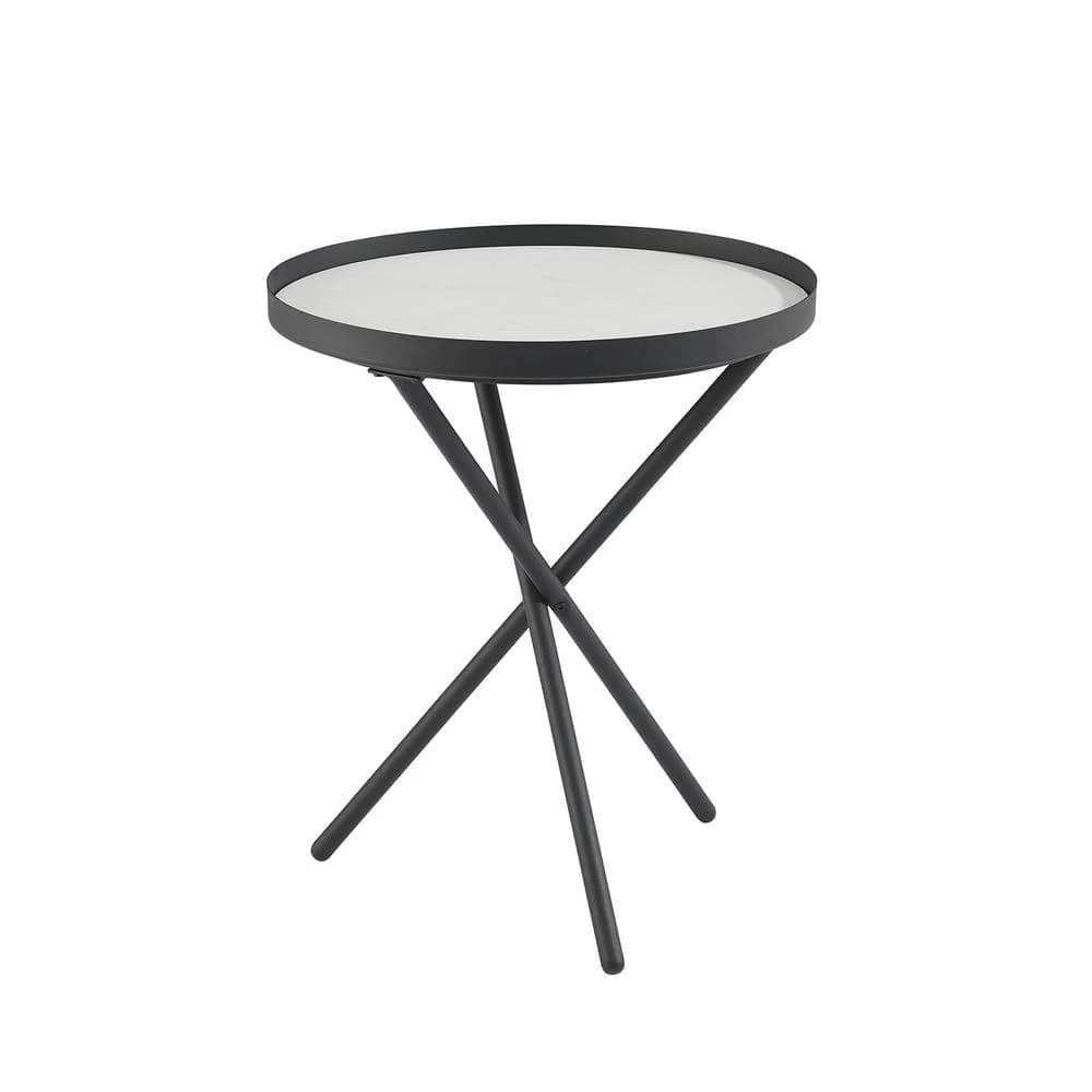 Elegantly enhance your space with this faux marble-top side table. With its high-gloss, melamine tabletop, this accent table is moisture resistant and ready to host your nightcaps and party cocktails, along with your favorite decor. The smooth, sanded metal base lends a luxe look while a simple silhouette boasts contemporary intrigue and a small-space-friendly shape. Whether it’s sitting couchside, in your personal sanctuary, or accenting your home office, this versatile piece is an effortless ode to your great style.