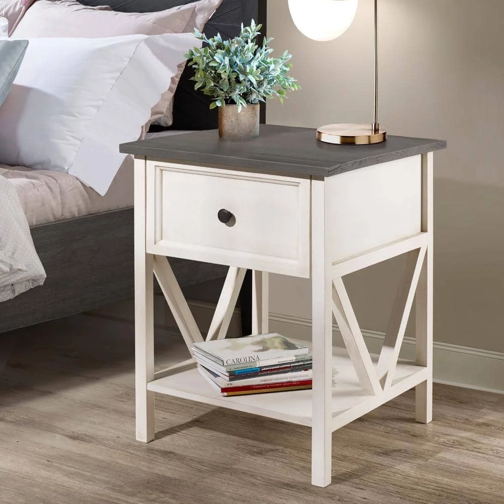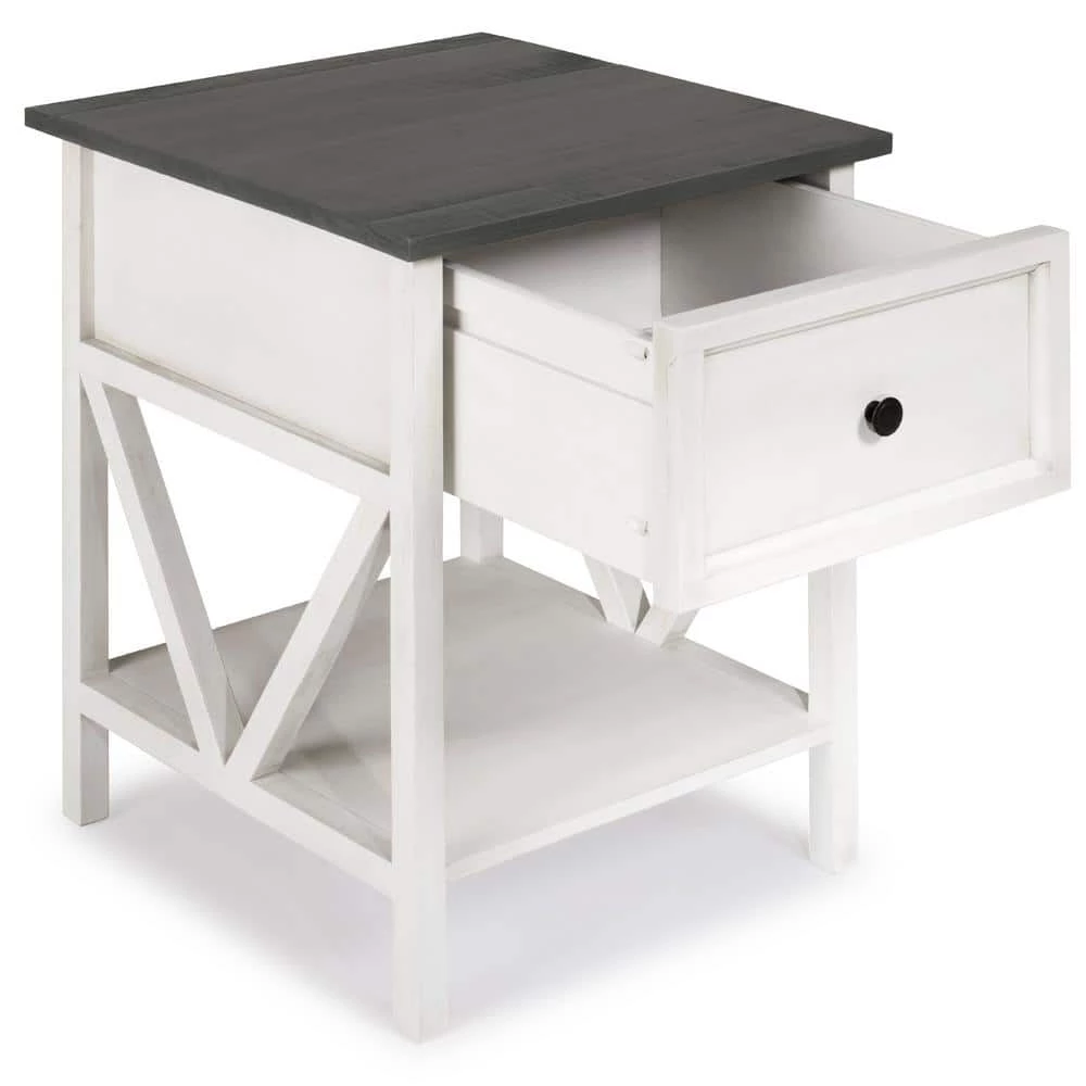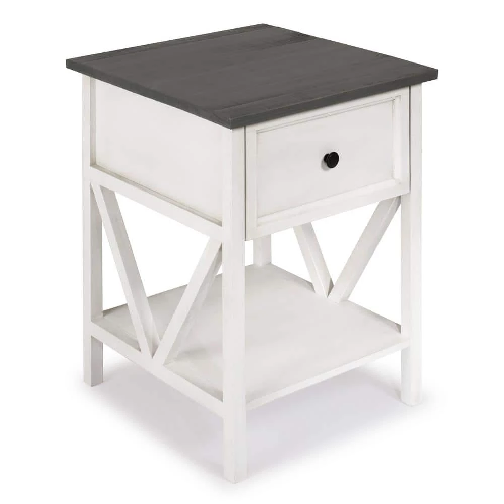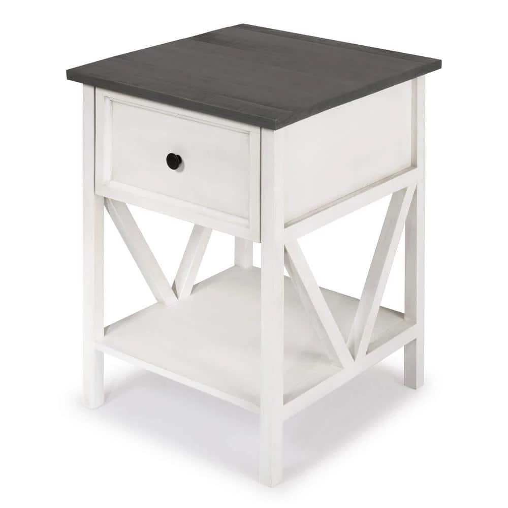 Sounds of the lapping waves will be nearly audible with this coastal side table. Every day you will feel the impulse to pull on your suit and go for a swim because of the distressed wood top and inverted A-frame lower shelf. Use the one drawer to keep sunscreen, towels, and other beach essentials ready for any spontaneous trip inspired by this solid wood nightstand.