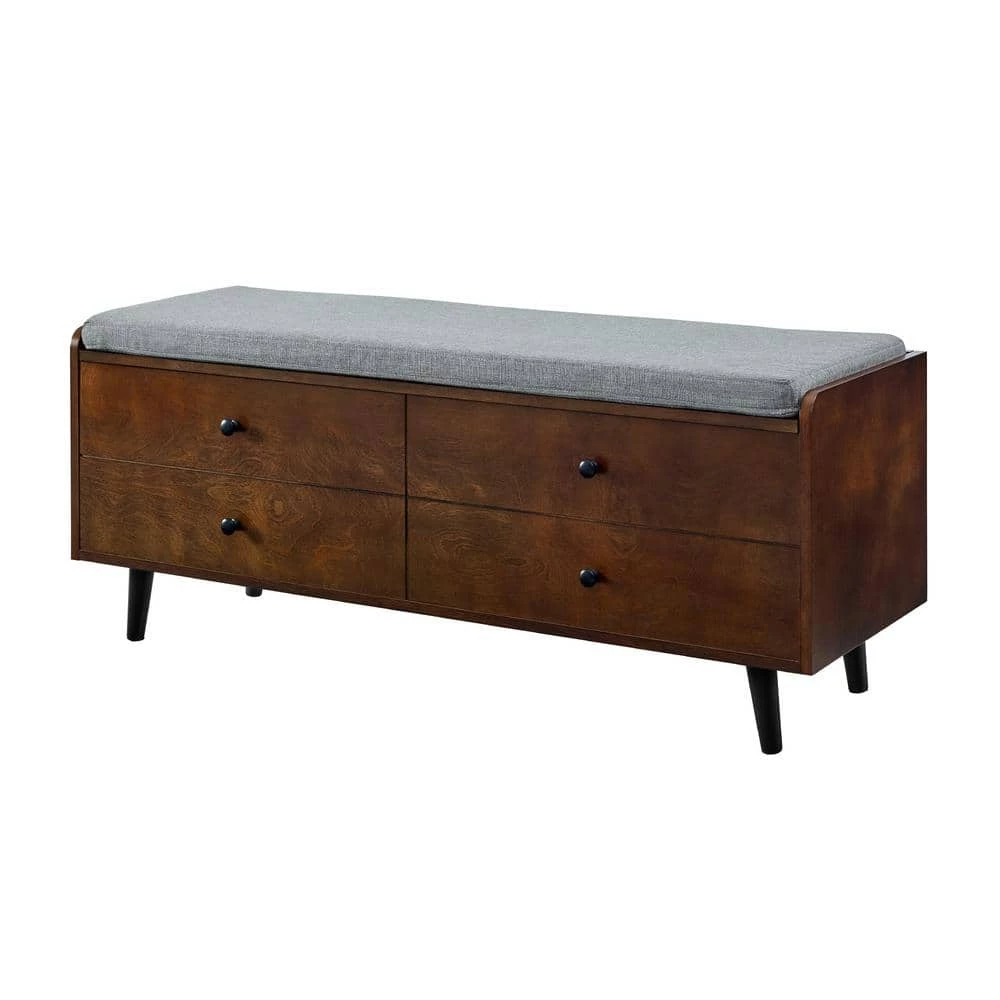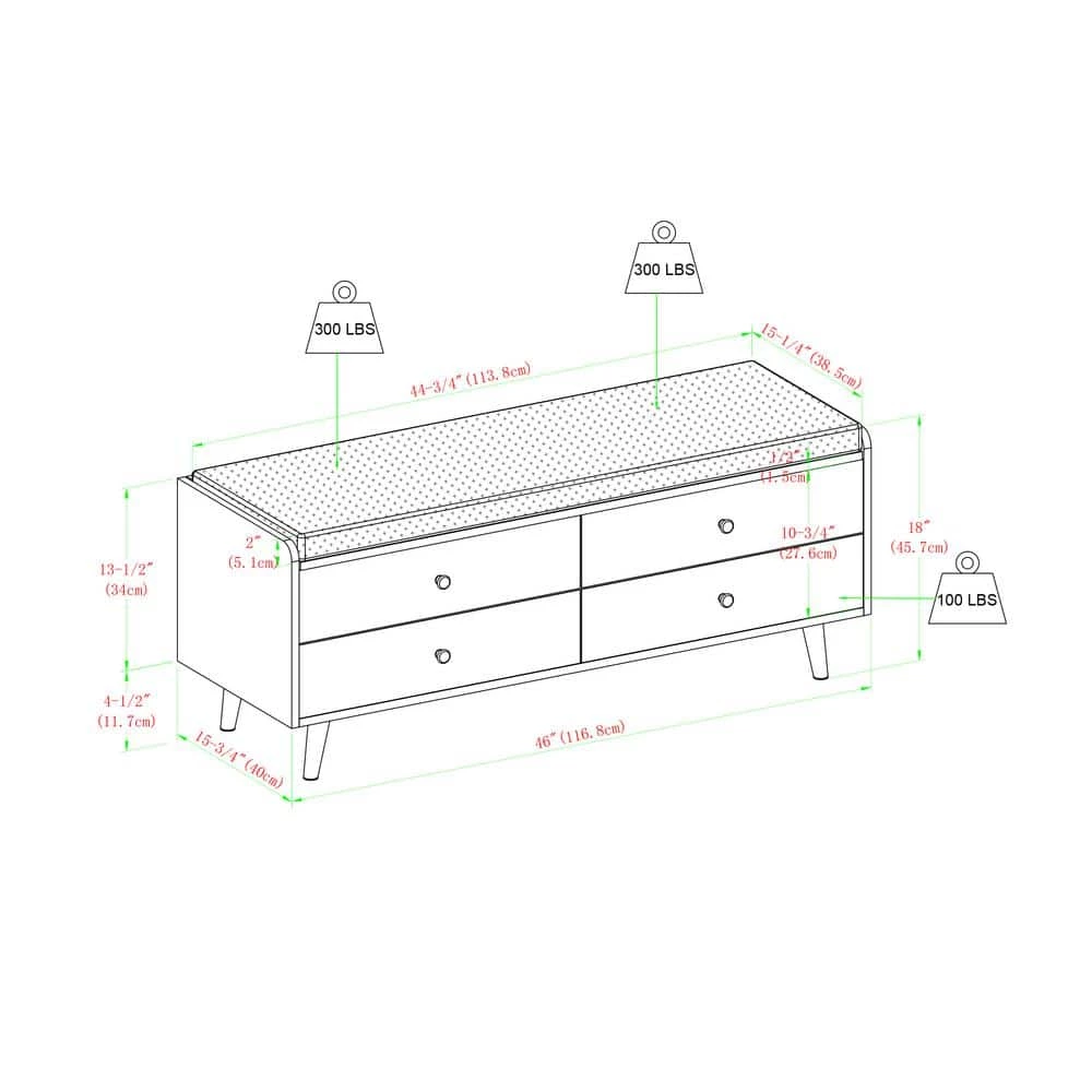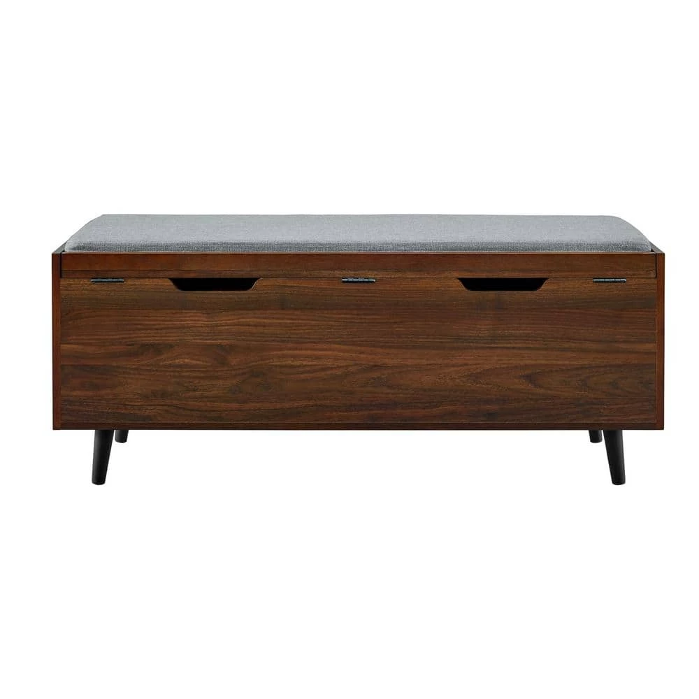 Picture yourself enshrined in a dazzling Renaissance painting as you lounge on your new 46″ mid century storage bench. A comfy, polyester cushion topper is the ideal seat for your book filled afternoons or lazy Sundays. The bench’s storage top comes with soft close hinges, so never disrupt your peaceful afternoons by worrying about slamming or damaging the bench’s frame. Envision placing your new bench in a soft, sunlit entryway or by a cozy bedroom window.