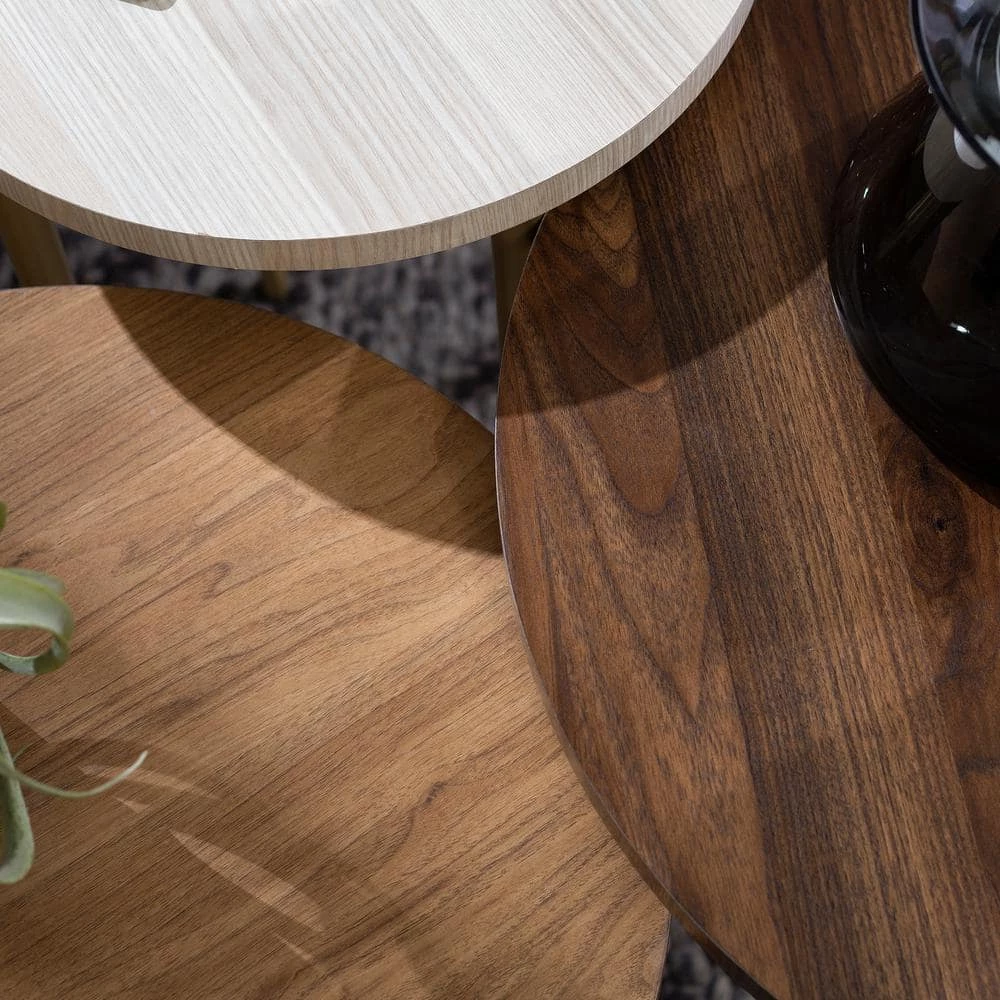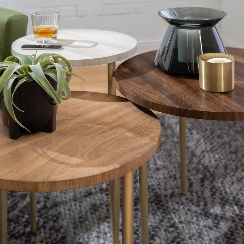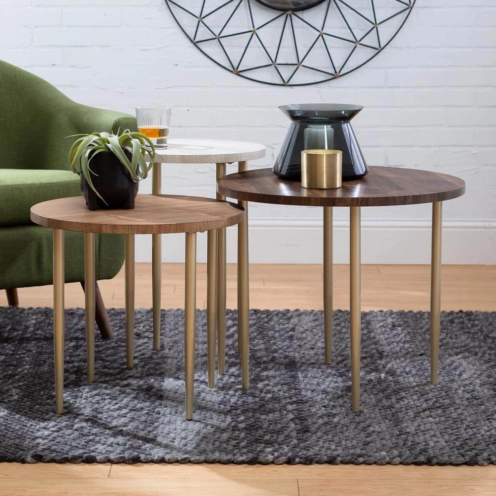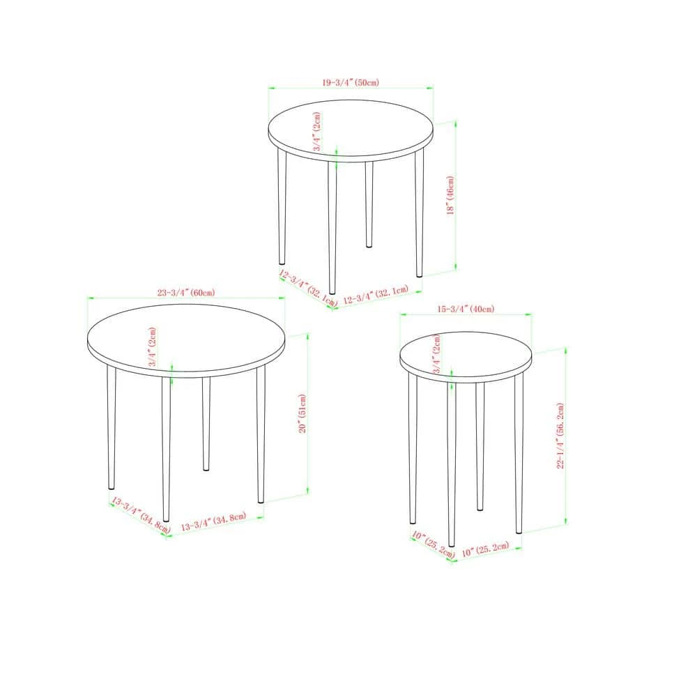 - Dimensions: tallest table: 22 in. H x 15.5 in. D, middle table: 19.25 in. H x 23.5 in. D, shortest table: 18 in. H x 19.6 in. D