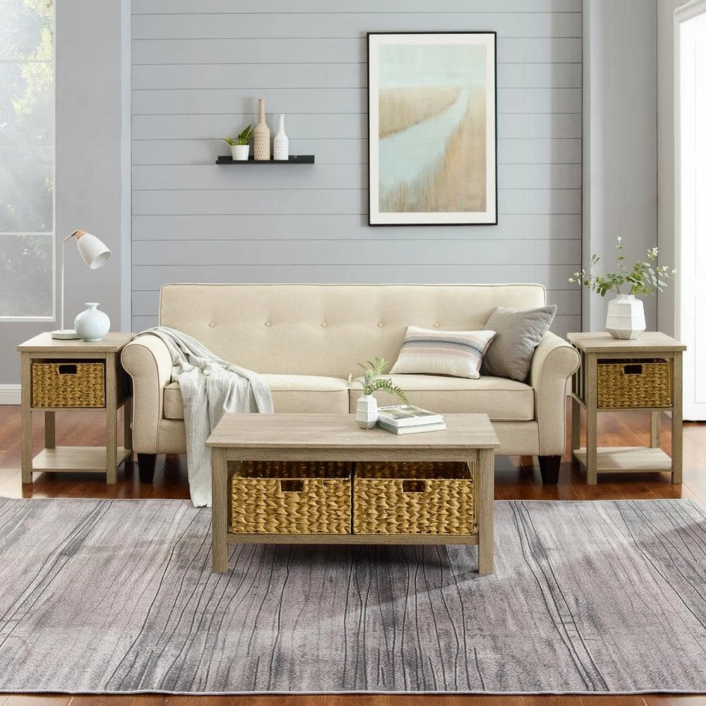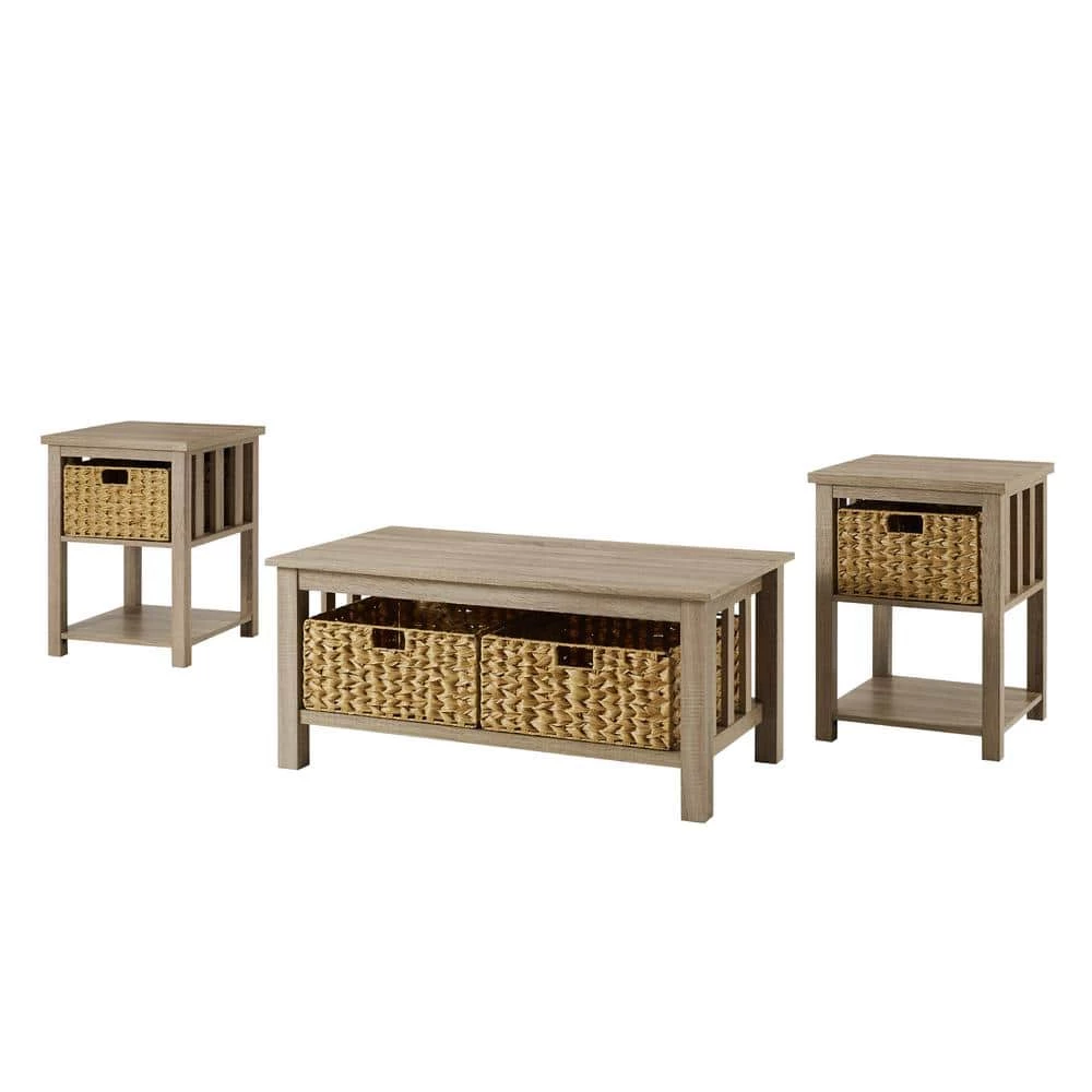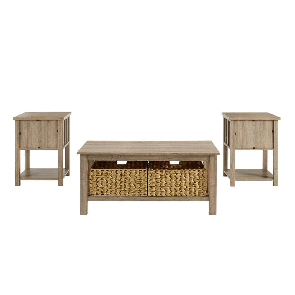 Embrace the warmest welcome home with this mission-style trio placed in the most-frequented spot of your space. Its mixed blend of open and closed storage and touch of rustic craftsmanship gives the coffee and side tables a sense of artisanal modernism, while offering plenty of display realty. PVC rattan baskets accessibly accommodate all of your closed-storage needs in bohemian-inclined style. Each accent table features a bottom tier, perfect for arranging your choice of hardback books, pottery, and other thoughtfully placed decor. Constructed with warp-resistant MDF and ultra-durable laminate, this matching set is sure to invite you to sit and stay awhile for years to come.