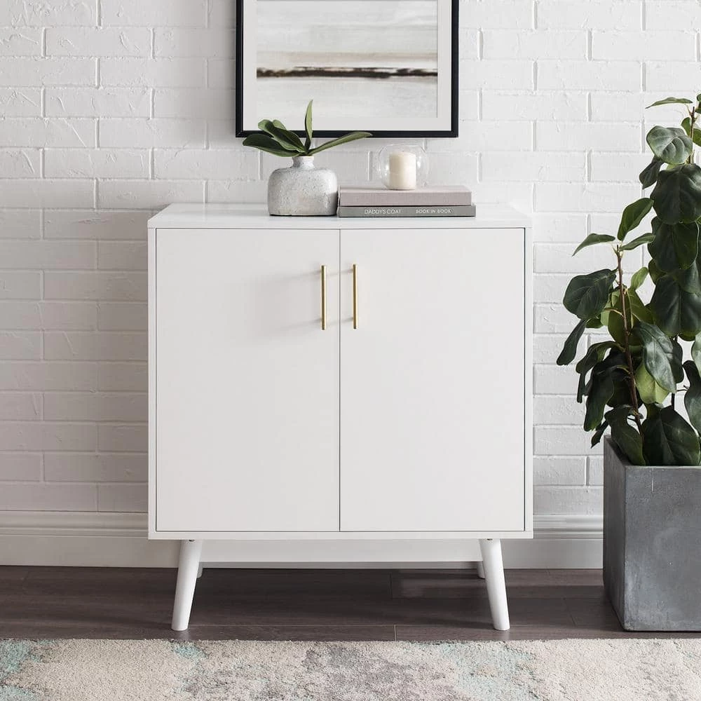 It’s hard always being right, but this darling 39 in. modern accent cabinet does it so well. She knows she’d improve your home with her warp-resistant, MDF wood frame and lacquer painted finish. 2-cabinet doors offer such an elegant display of closed storage and she knows how much you value a clean space. She also knows you’d love the adjustable shelf and her tapered leg silhouette And most of all she knows how much everyone is snatching up modern, versatile designs. She could be an accent cabinet, bar cabinet, bedroom cabinet, you name it. So, why not welcome her into your home and allow her to show how right she is for your organizational needs.