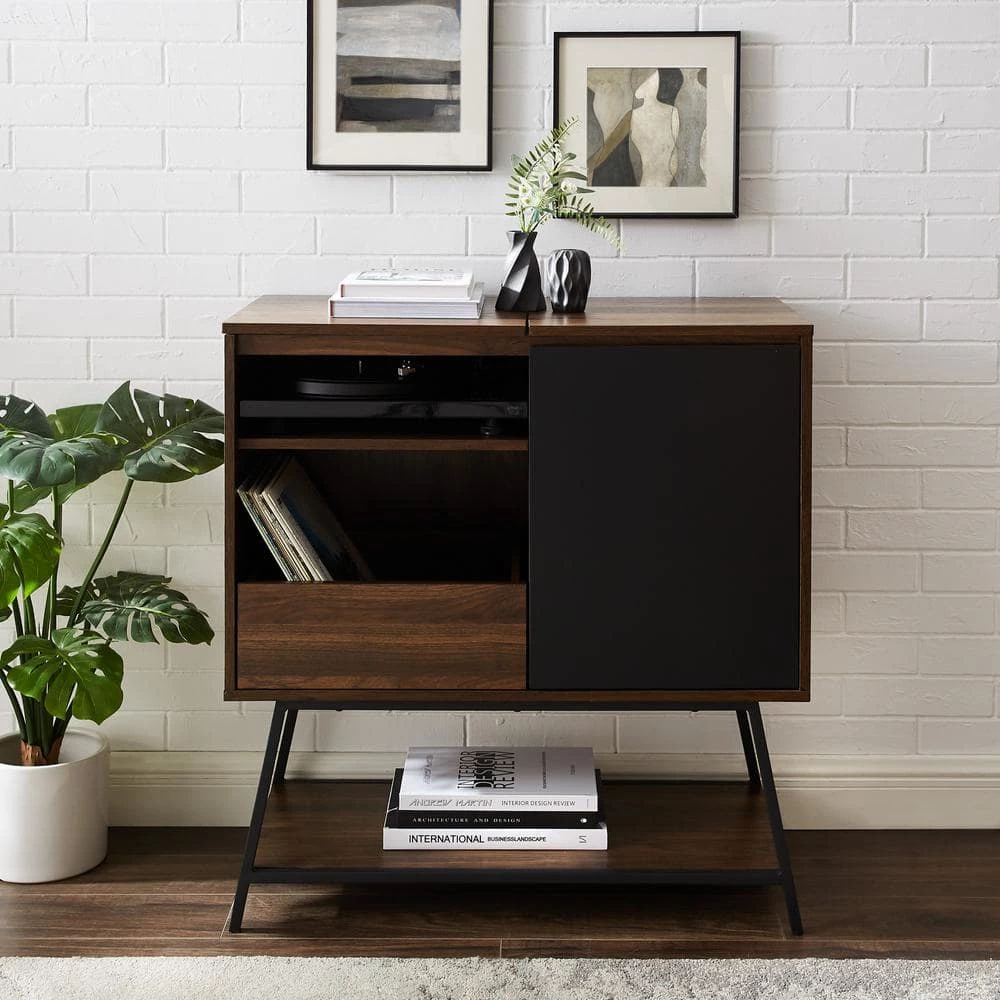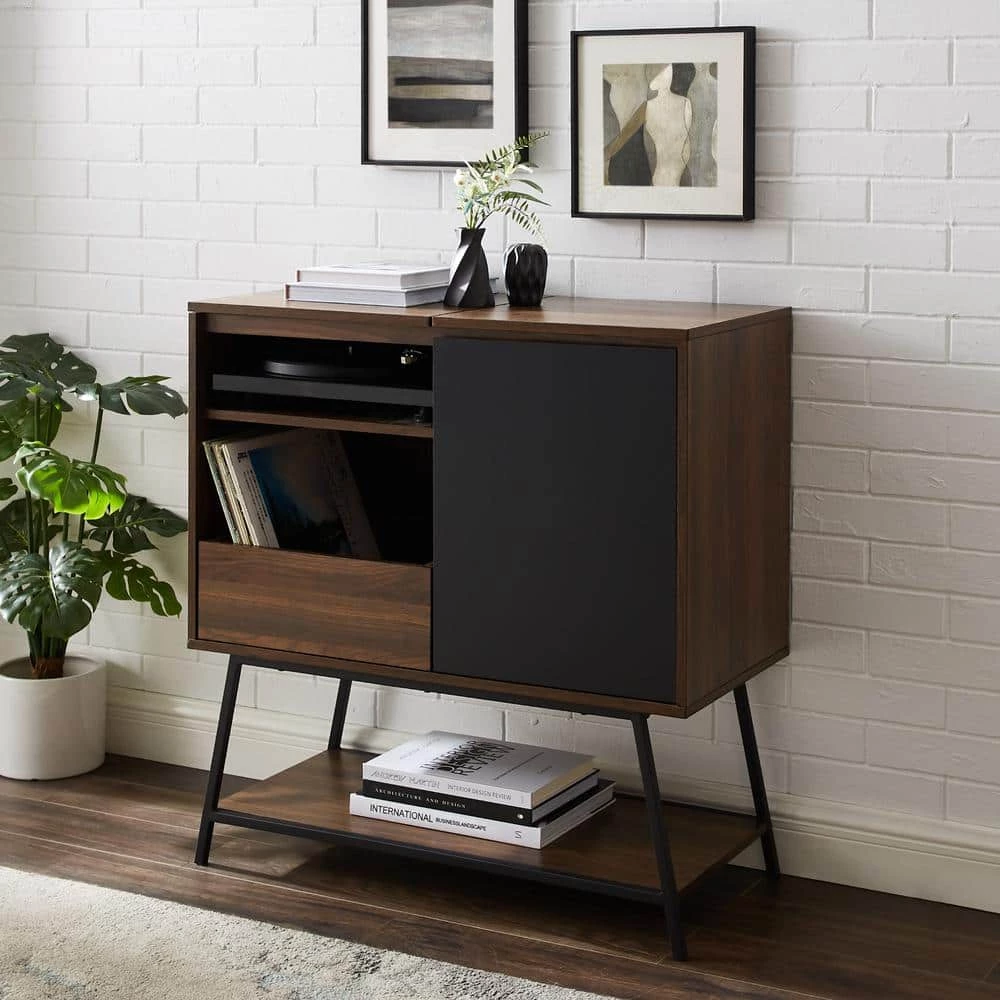 Enjoy a dance party as you slide into the living room in your comfy socks with your new records on full blast. You just brought home a 30″ accent cabinet with record storage, and knew it was the perfect sidekick to recreate all your favorite movie montages. An array of fixed and adjustable shelves offer plenty of space for your fan art figurines, groovy houseplants, and record collections while cord management keeps cables tidy. Enjoy the warm, pretty wood laminate finish whenever it catches the sun as you dance this way and that. Jam out with this accent cabinet in your bedroom, living room, dining room, or home office.