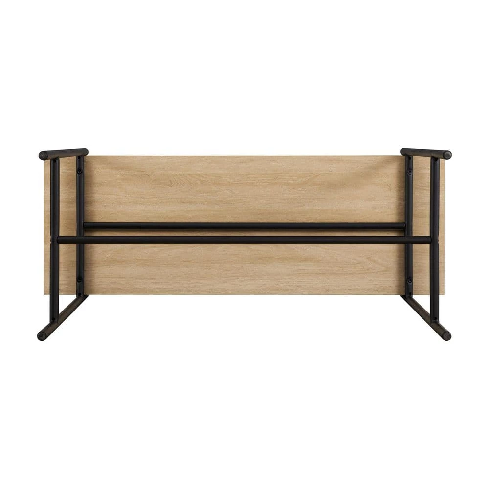 - Made with warp-resistant engineered wood, durable laminate, and powder-coated steel