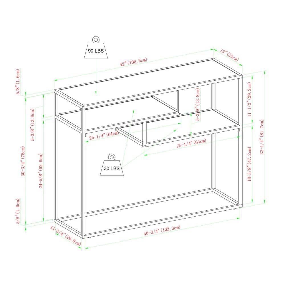 - Dimensions: 32.25 in. H x 42 in. L x 13 in. W 30 lbs.