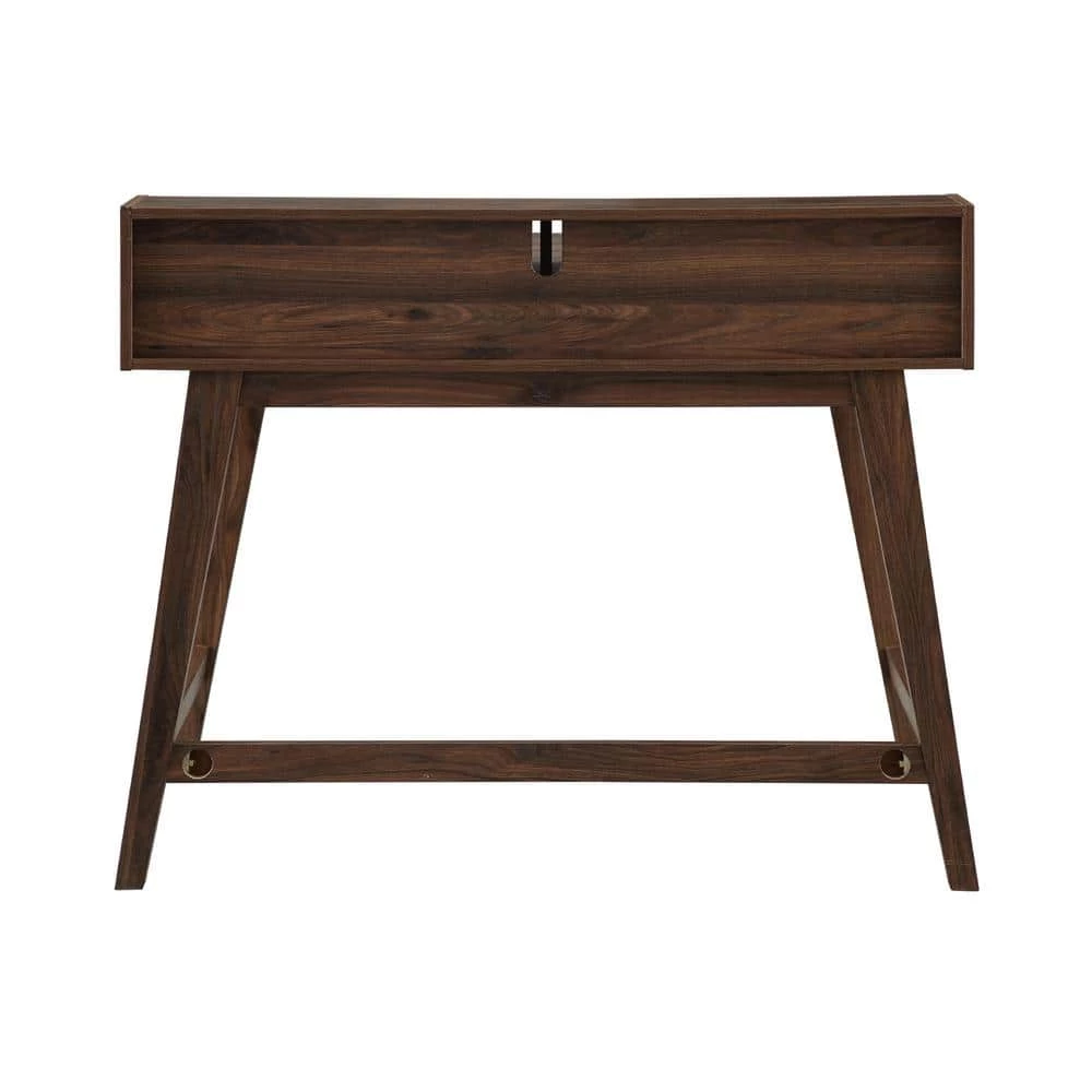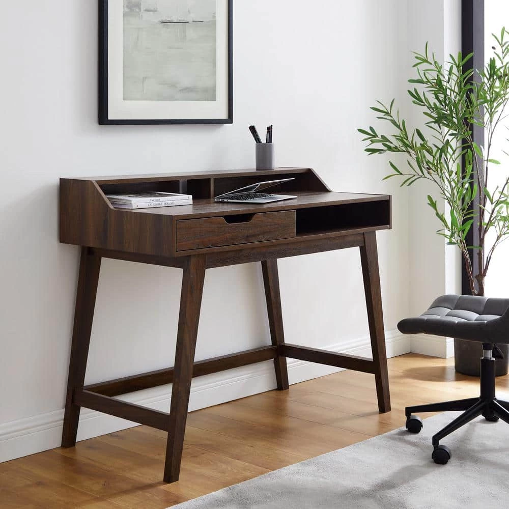 Reimagine a workspace with no boundaries atop the sleek surface of this hutch-top computer desk. Its minimalist silhouette brings with it components of Scandi style and elements of age-old, classic comfort for the work-from-home-er, studious scholar, or ingenious creator. A single drawer on smooth, telescoping metal glides ensures your materials are housed discreetly in style, at-the-ready for your next project. Cord management ports and extra storage within the hutch top boasts its functionality as the ideal spot for tech, while its contemporary frame lends this piece just enough versatility to be displayed as a stunning vanity with storage for all your favorite things.