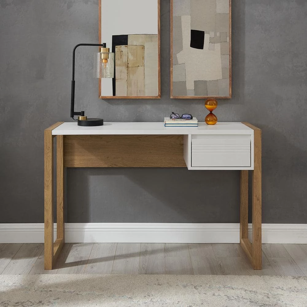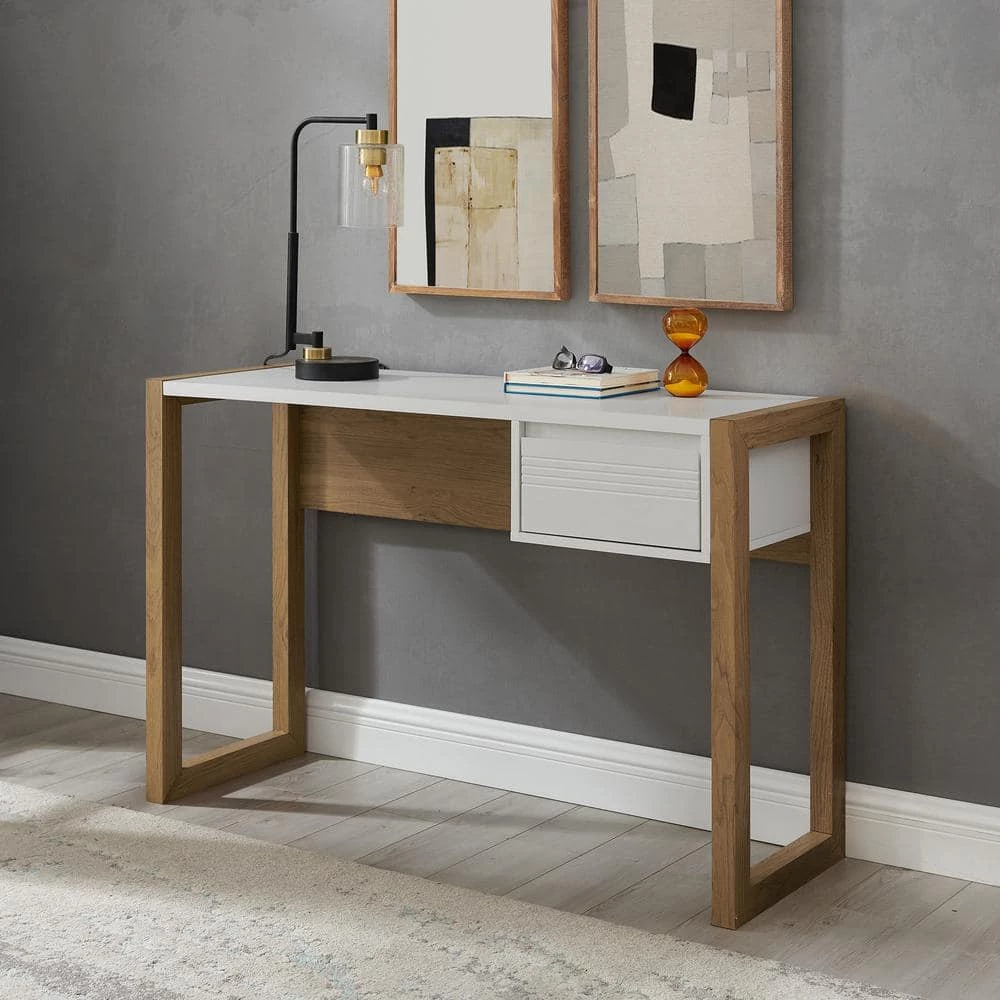 - Modern writing desk with fluted door details and two-tone design