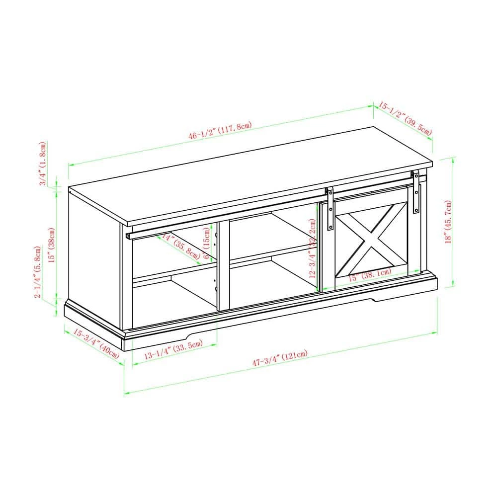 - Dimensions: 18 in. H x 46.5 in. L x 15.5 in. W
