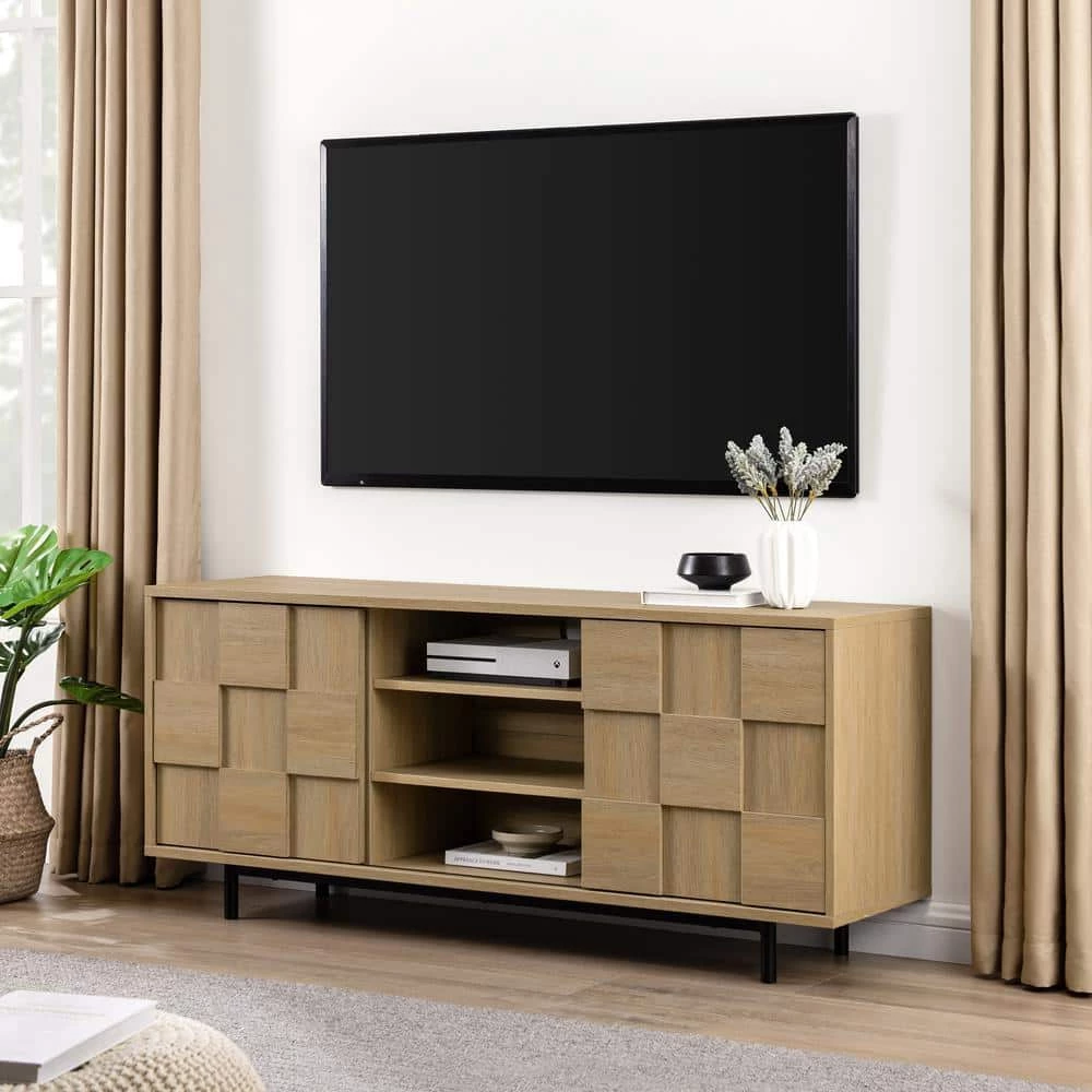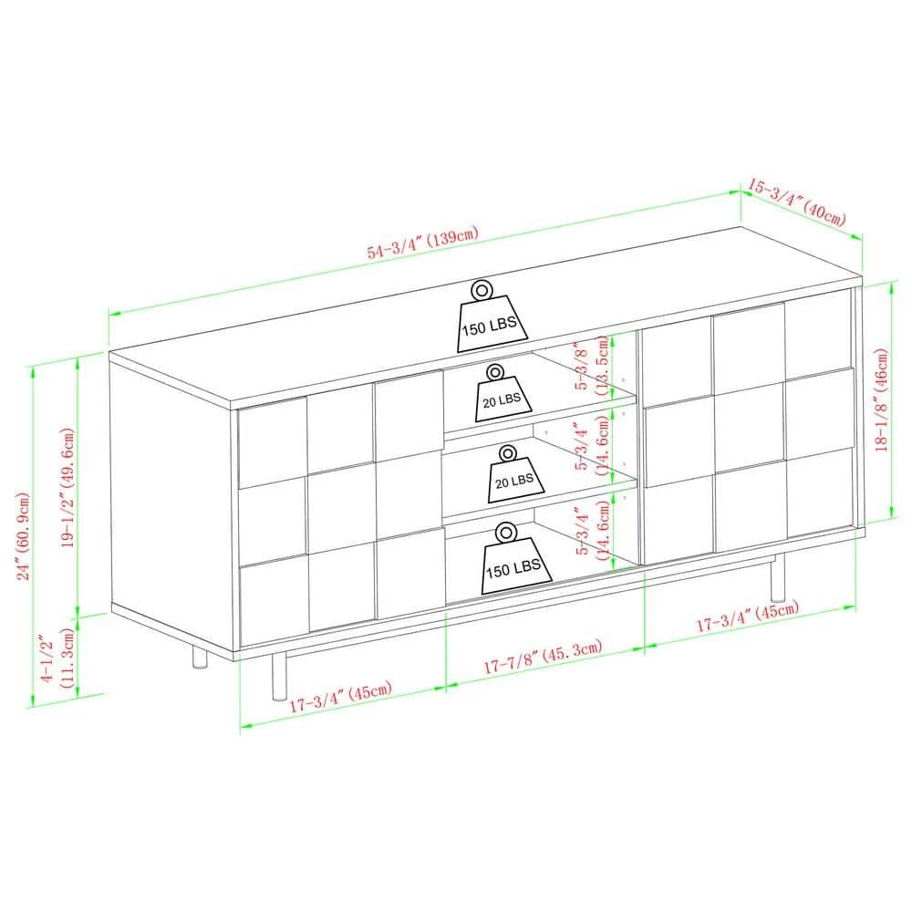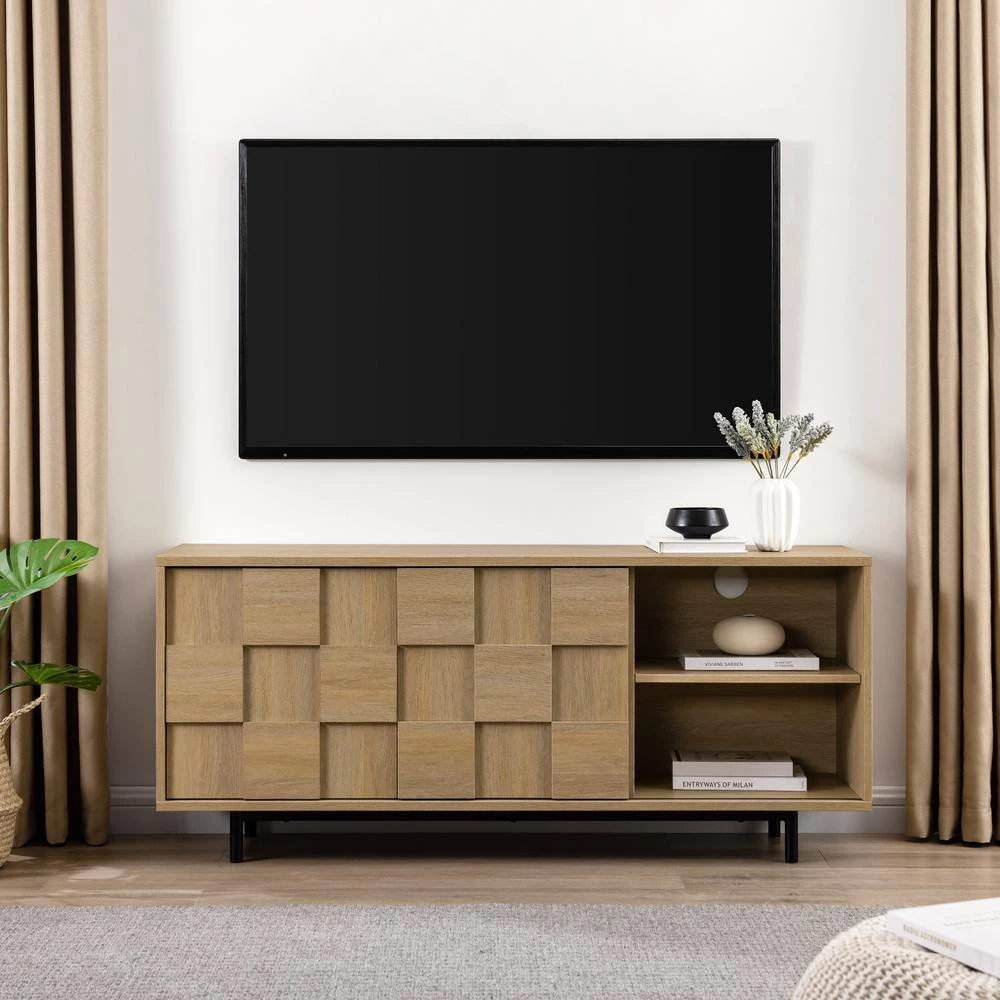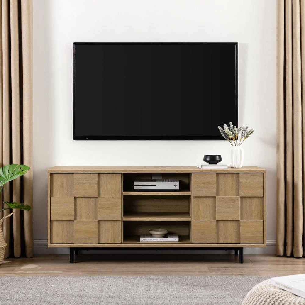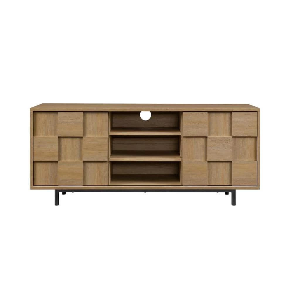 You’ve hit a checkmate with this unique, stylish twist on a functional classic. This checkered-door TV stand will add a flair of fun to your space, while its ample storage capabilities leave room to store all your movie night media, gaming essentials and more. Adjustable shelves allow you to customize your storage display and 3 cord management ports will help you keep your tech in check. Whether you display this modern console as a buffet, entertainment center or sideboard, it’ll definitely be the most eye-catching display in the room.
