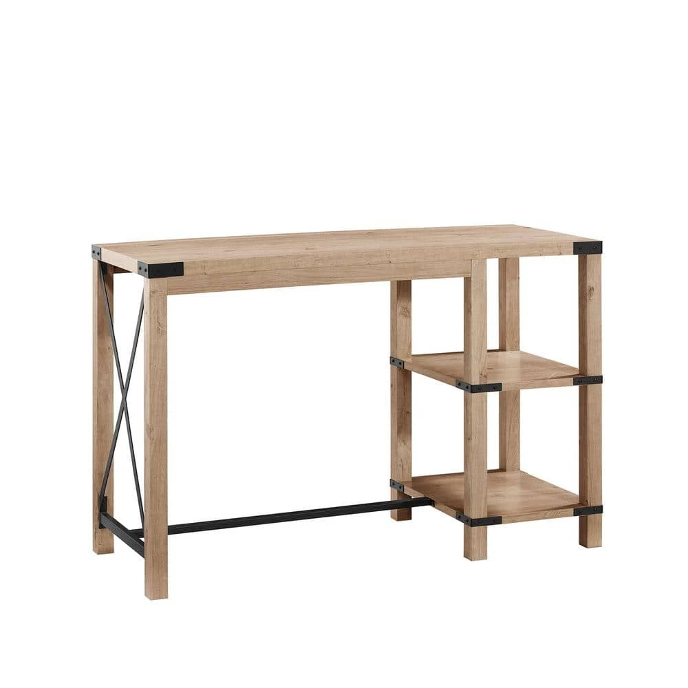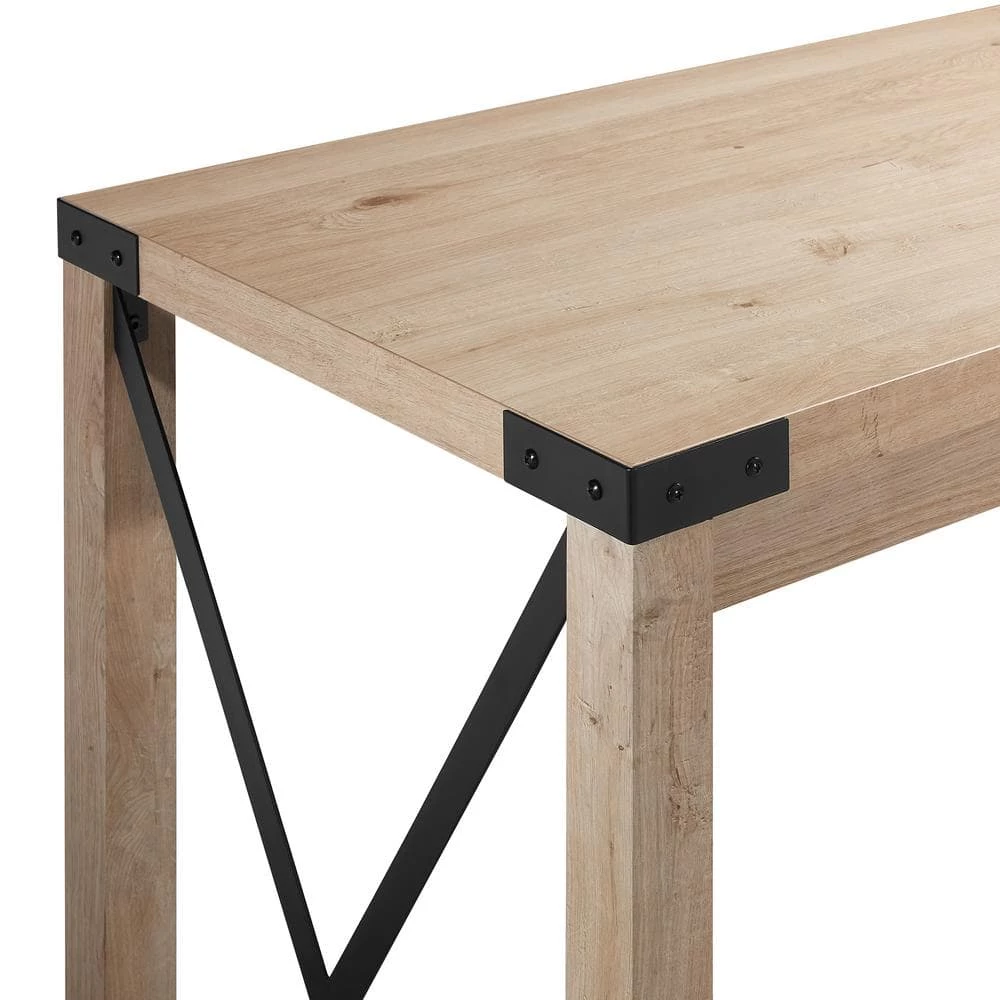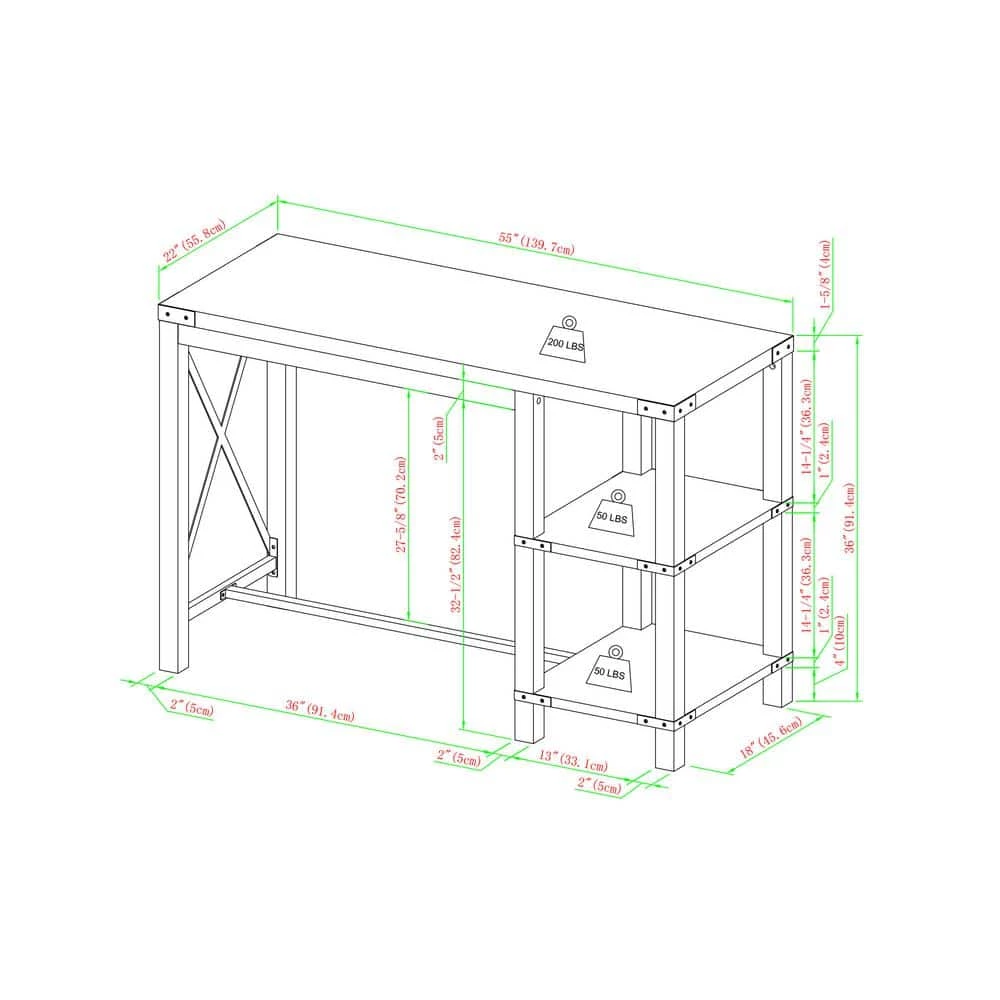Serve up style, creativity, organization, or even a dish fresh out of the oven with this versatile console. Display it as a style-savvy island and personalize your dishware display with the ample open shelving. Use it as a standing desk or personal vanity and use its 2-shelves as a haven for files, knick-knacks, and work-from-home essentials or perhaps, as a buffet in the dining room, entryway console in the foyer, or island in the kitchen. Wherever it’s placed, its classic silhouette and durable laminate finish and angled iron accents add an element of modern design and farmhouse charm to any room.