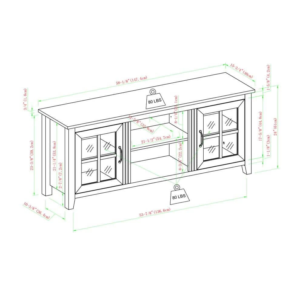 Savor slow mornings or late night series binges with this glass door TV console. Ideal for a variety of design styles, its classic silhouette offers a cool and casual air that’s sure to create a refuge to gather and watch, play, or socialize. Tempered safety glass doors with subtle, modern accents lend a stylistic approach to closed storage, and three adjustable shelves offer the perfect place to rest your media components. Created with warp-resistant MDF and long-wearing laminate, this TV stand provides endless potential to house entertainment essentials and a timeless tabletop to showcase your favorite decor.