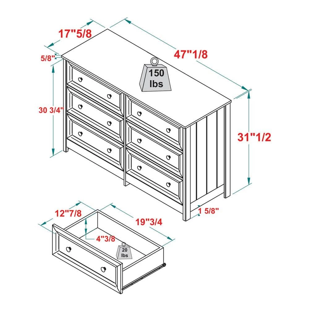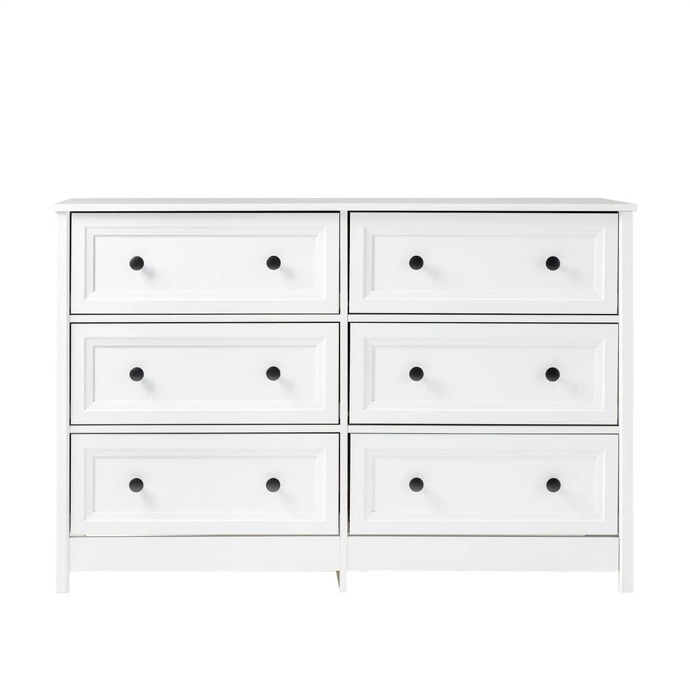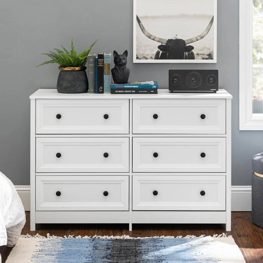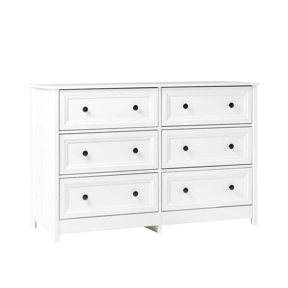 Pull some inspiration from your daydreams of the countryside with this quintessentially cottage-inspired six drawer dresser. Its timeless profile showcases classic detail, while metal drawer handles offer a subtle contemporary touch. Six spacious drawers provide copious hidden storage for anything, from children’s clothes to your own wardrobe or spare linens. The perfect piece to appeal to both youth and mature spaces, this bedroom classic encourages you to get lost in a whimsical bedtime story or style it with your favorite tabletop decor.