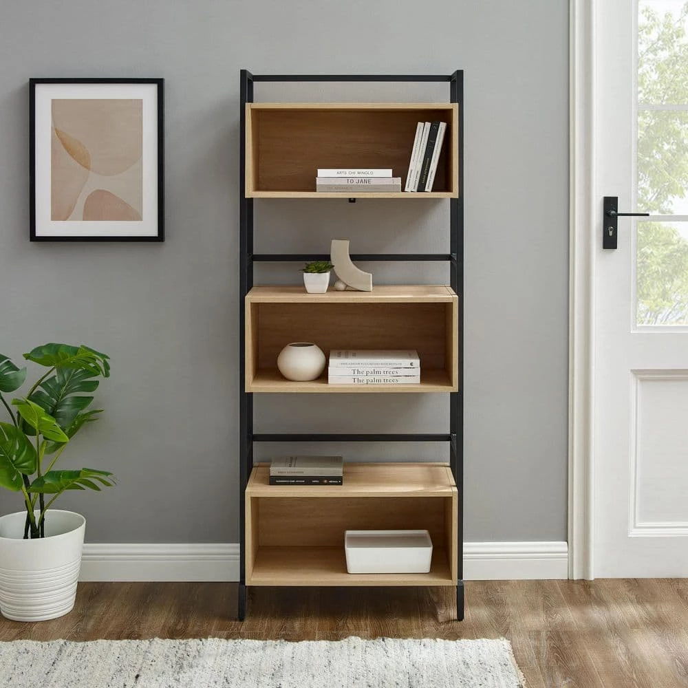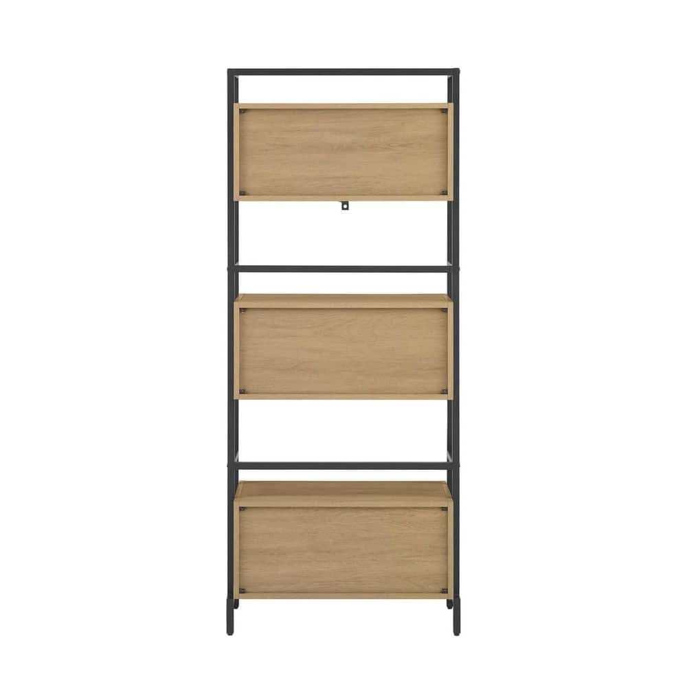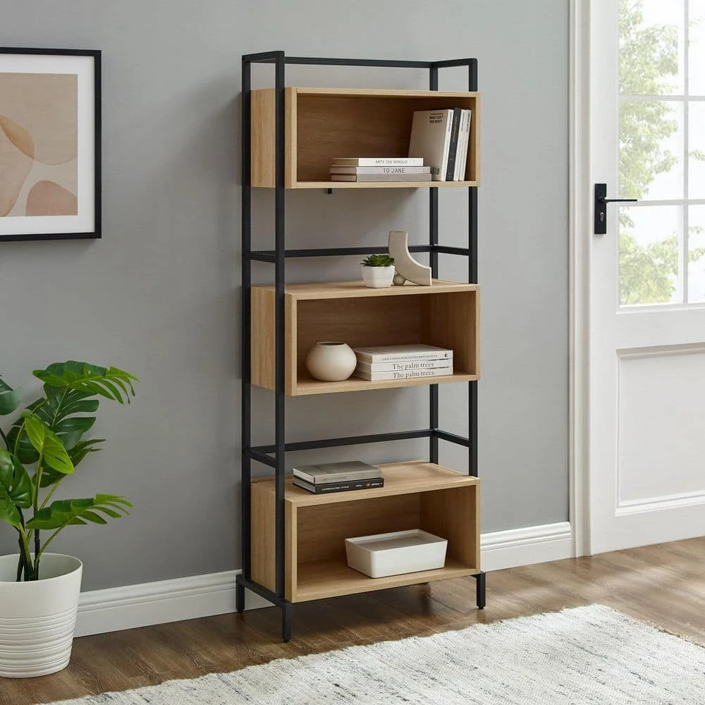 Think outside the box with your next shelving display. A bookshelf fit for every modern minimalist, its three open cubby shelves and their sleek surfaces give you all the space you need to display artwork, thrifted treasures, or your collection of classic flicks. Wall-mounting hardware and adjustable foot levelers allow you to securely debut a customizable display, whether that’s in your home-office hub, entryway, or living room.