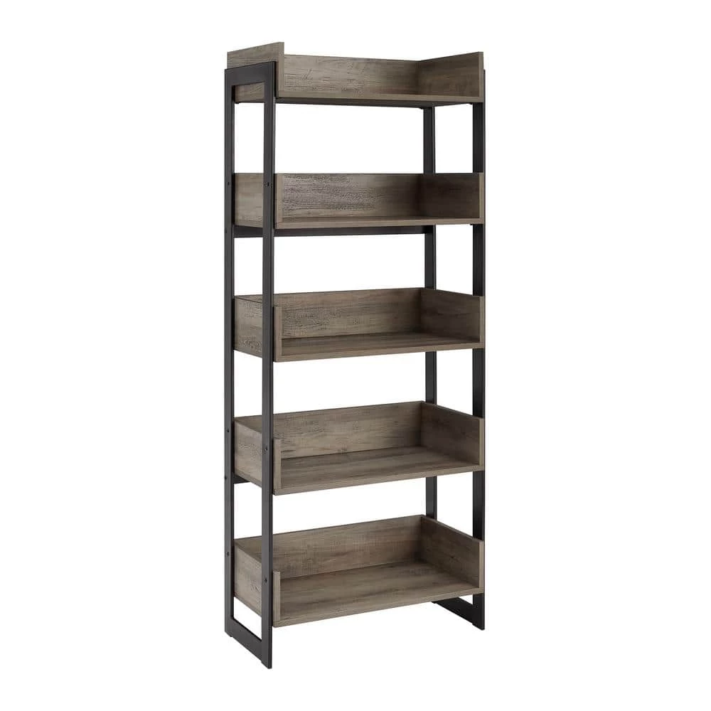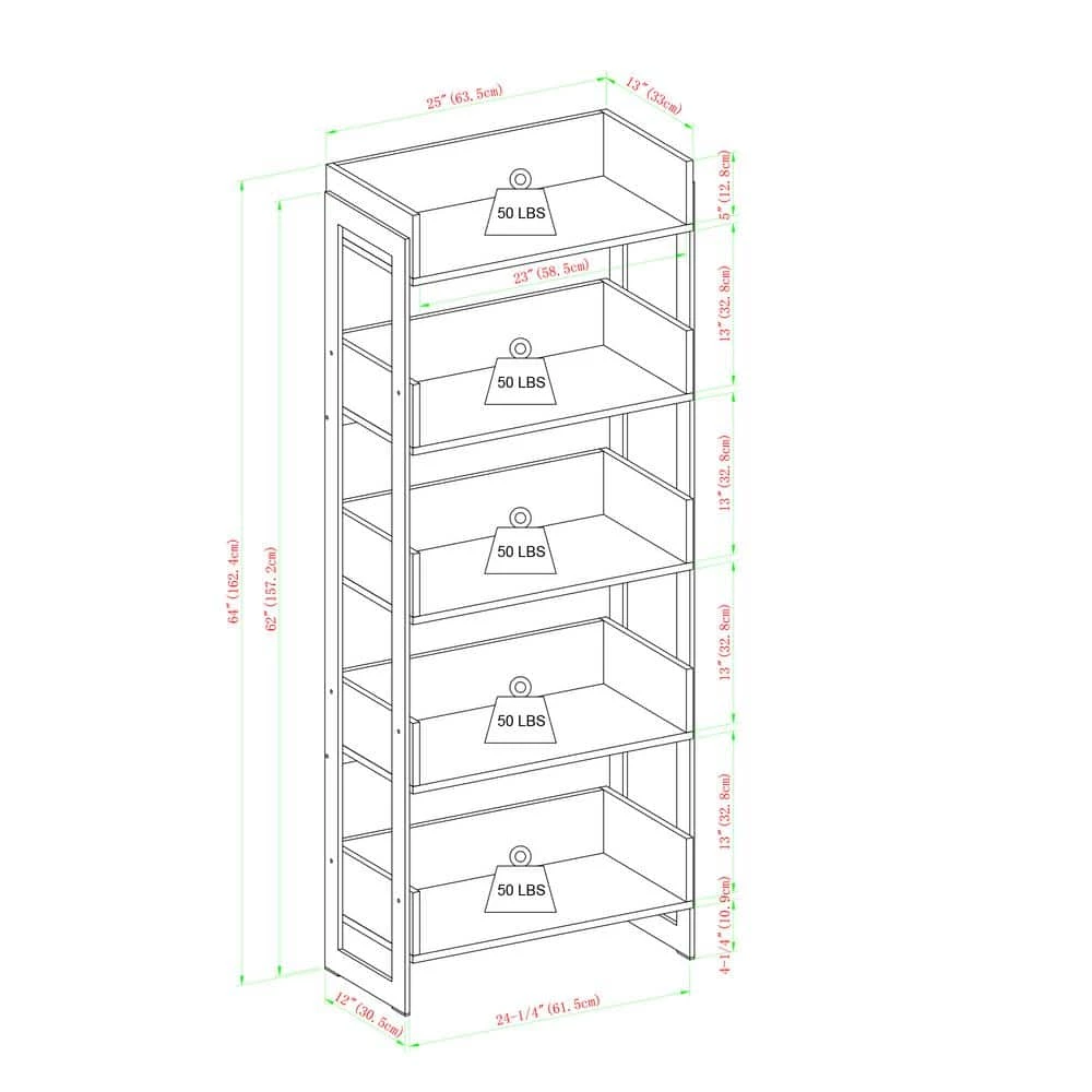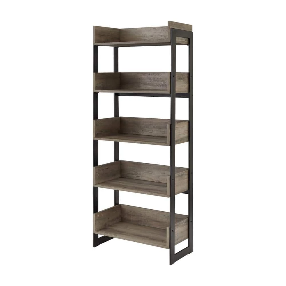 Sick of small shelves, running out of room, or getting startled in the middle of the night when your books fall off the side of your old bookcase. Now you don’t have to. Feel satisfied with your new 64 in. tall, metal and wood bookshelf. These deep box shelves come with raised edges, and with 5-tiers total, imagine all the new organizing capabilities. Craft a mini library or use the shelf depth to display a layered interior design style. A contemporary design makes this bookcase a breeze to match most home looks. Try out a farmhouse look, an industrial atmosphere, or a boho vibe.