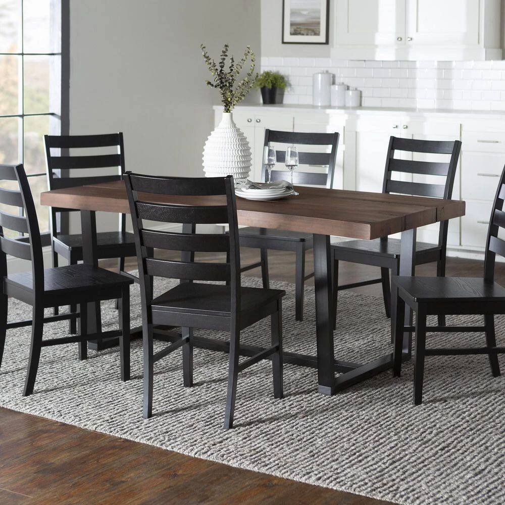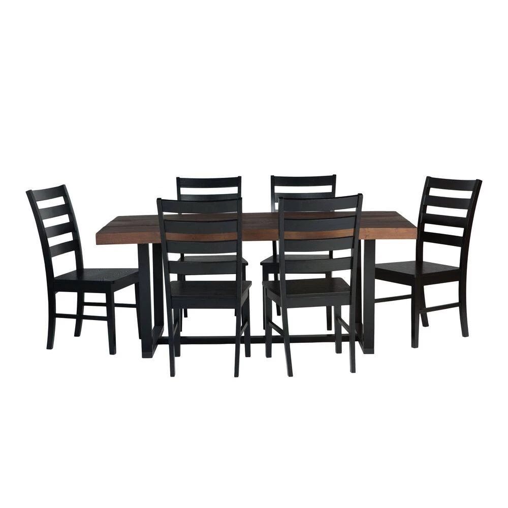 Introduce this 7-piece dining set into your kitchen or dining area to enjoy meals together as a family. This table set features a beautiful 2-tone design, with the chairs and table legs all in a black finish and the distressed table top of grey. The wood of the table is responsibly harvested from renewable resources for a stylish and sustainable piece. Including 6 chairs, each having a slatted back design for an overall timeless and farmhouse style. You’ll love the way this kitchen set will complete your home by providing seating area for daily use.