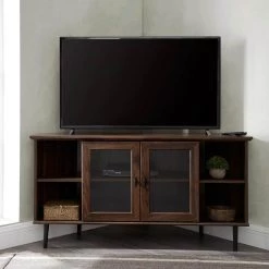 Find the perfect base for your TV with this modern low-profile entertainment center. It’s the ideal blend of open and closed storage and cord management so you can easily set up components on display or tucked away. There are 2-drawers on metal telescoping glides and 2-doors with adjustable soft close hinges that each feature an adjustable shelf behind them. Made of warp-resistant MDF, durable laminate and study powder-coated steel, this streamlined TV console has a stylish and long-lasting build.