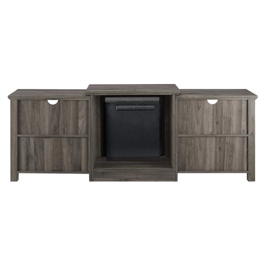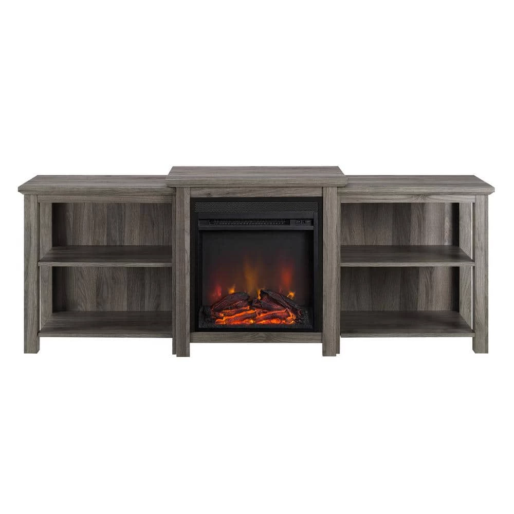 The epitome of simple perfection, this tiered open shelf TV console has everything you need. Fixed shelves with cord management holes help you organize consoles and cable boxes with ease, while the center of this classic media console features an 18 electric fireplace that plugs into a standard outlet. Two separate switches control the heat and LED flame lights so you can choose to have extra heat, extra ambiance, or the best of both worlds. This media console can accommodate TVs up to 78 in.