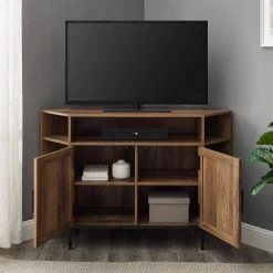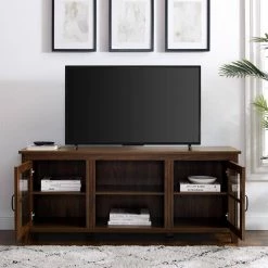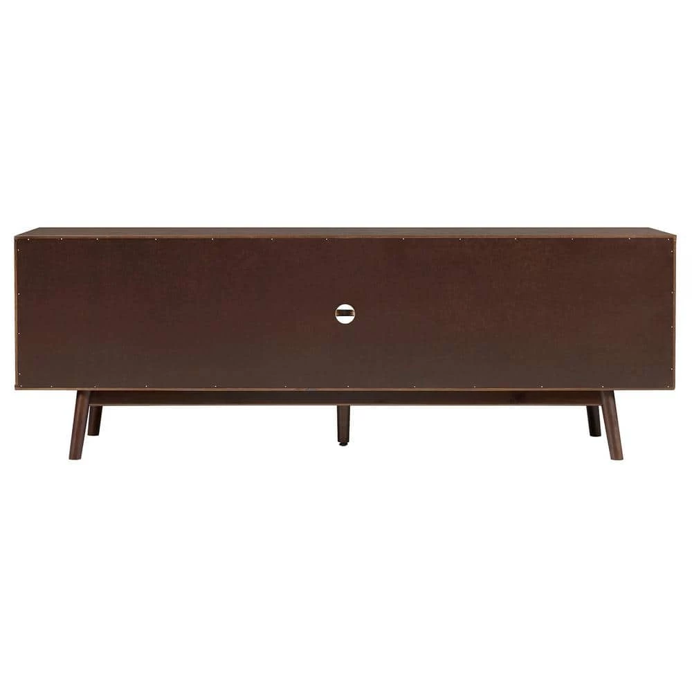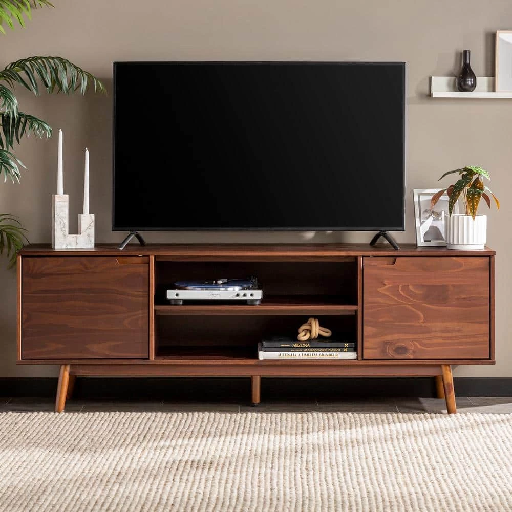 It’s the ultimate boho delight. This 70 in. solid wood TV console will do wonders for your living space. Use its versatile design as a TV stand, home office sideboard, or even as a kitchen buffet. With 2-sliding doors, enjoy a touch of closed storage. Its chic tapered leg silhouette will add a modern aura to any room. So, enjoy organizing your favorite media components, photos, or house plants on its shelves. With a combo of fixed and adjustable levels, your organizational needs are sure to be met, and with such trendy style.