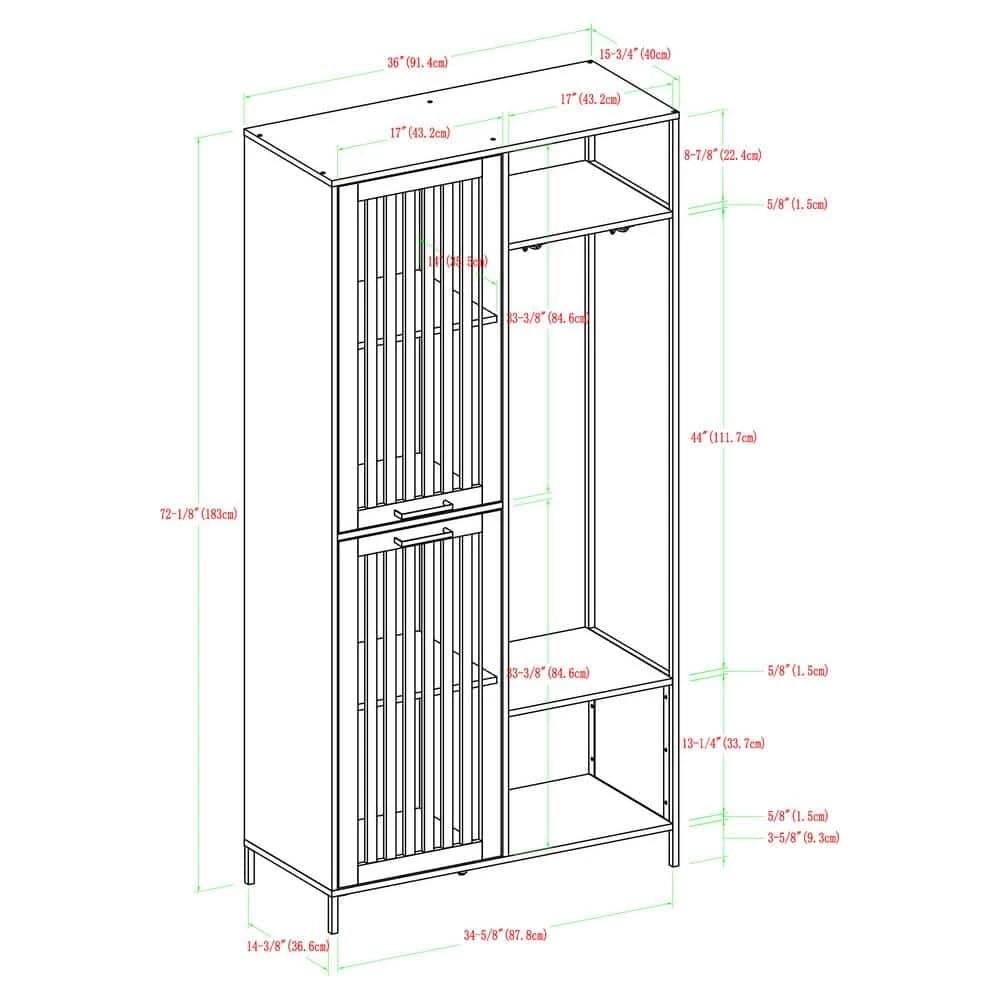 - Dimensions: 72 in. Hx 36 in. L x 15.75 in. W, 95 lbs.