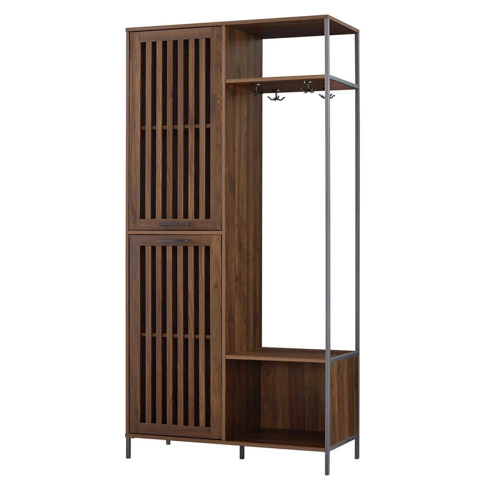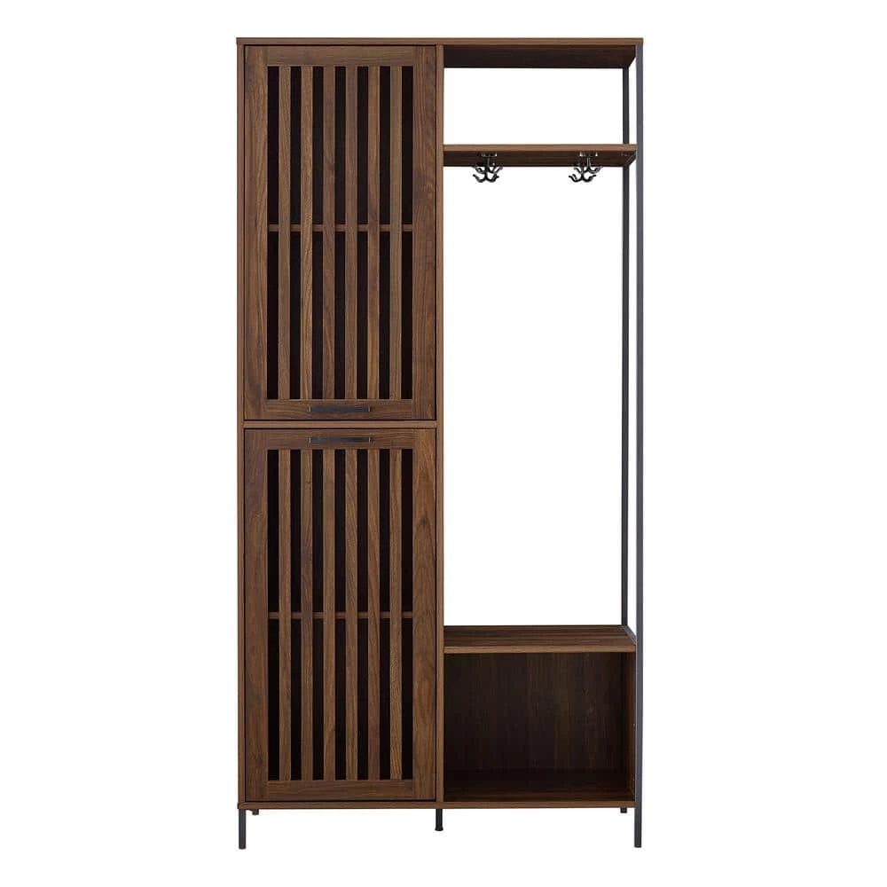 The bone-chilling wind may blow you into the house, but you won’t mind removing your coat, boots, and hat to place them on this trendy hall tree, once you get inside. The four-pronged hooks are screaming for something to hold onto and you do them a favor when you hang up umbrellas or jackets. Put a blanket and some slippers on shelves hidden behind peek-a-boo doors for immediate comfort on entering your home.