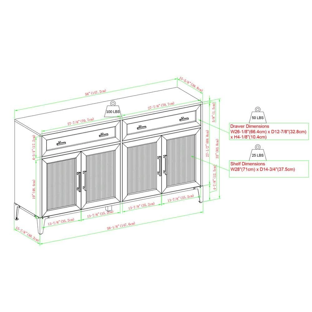 - Use as a buffet, credenza, or TV stand for screens up to 65 in.