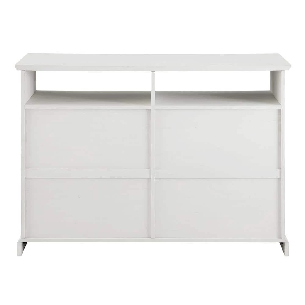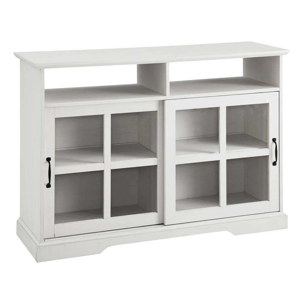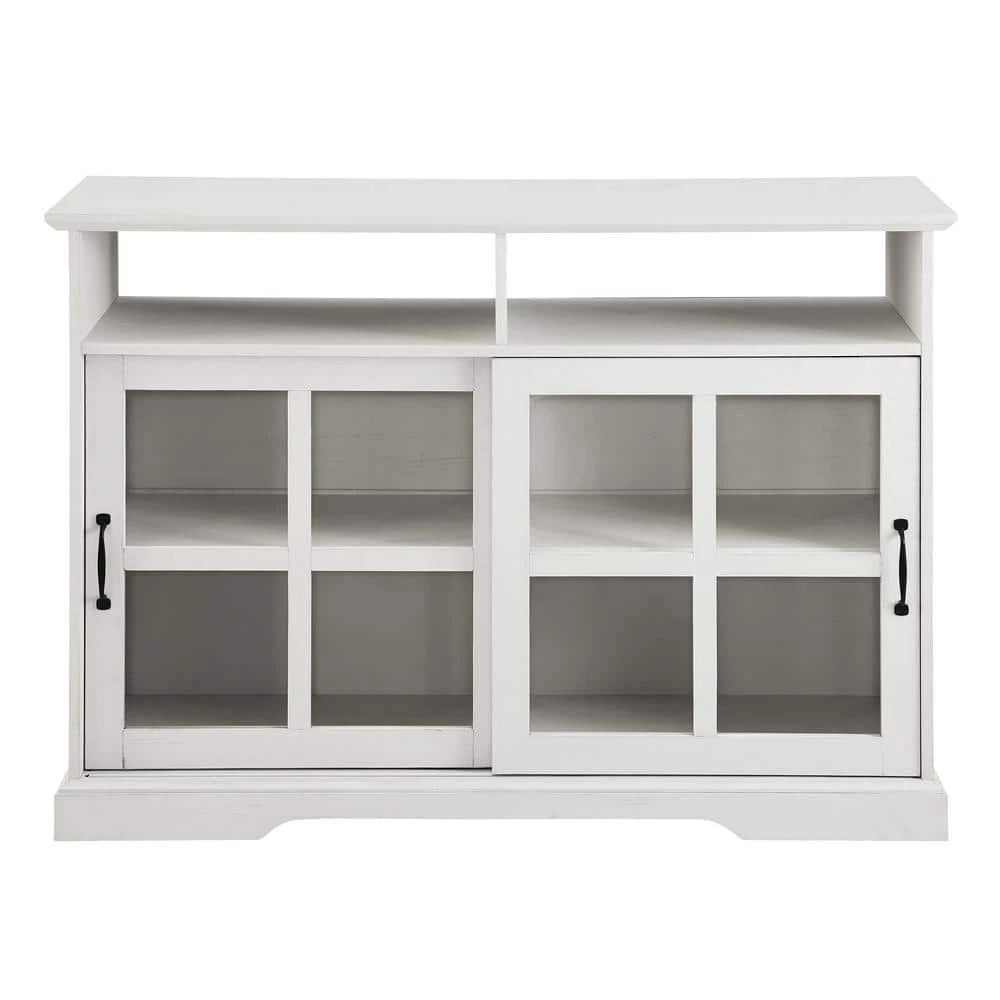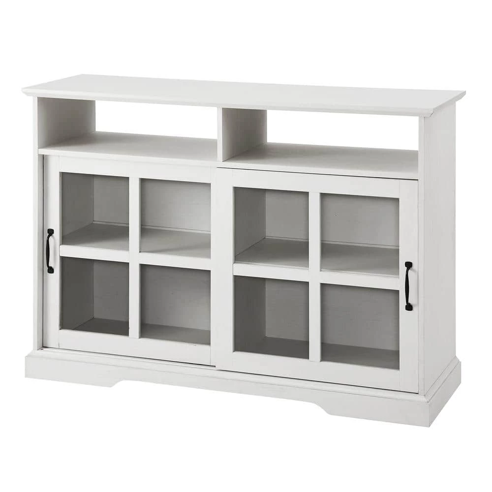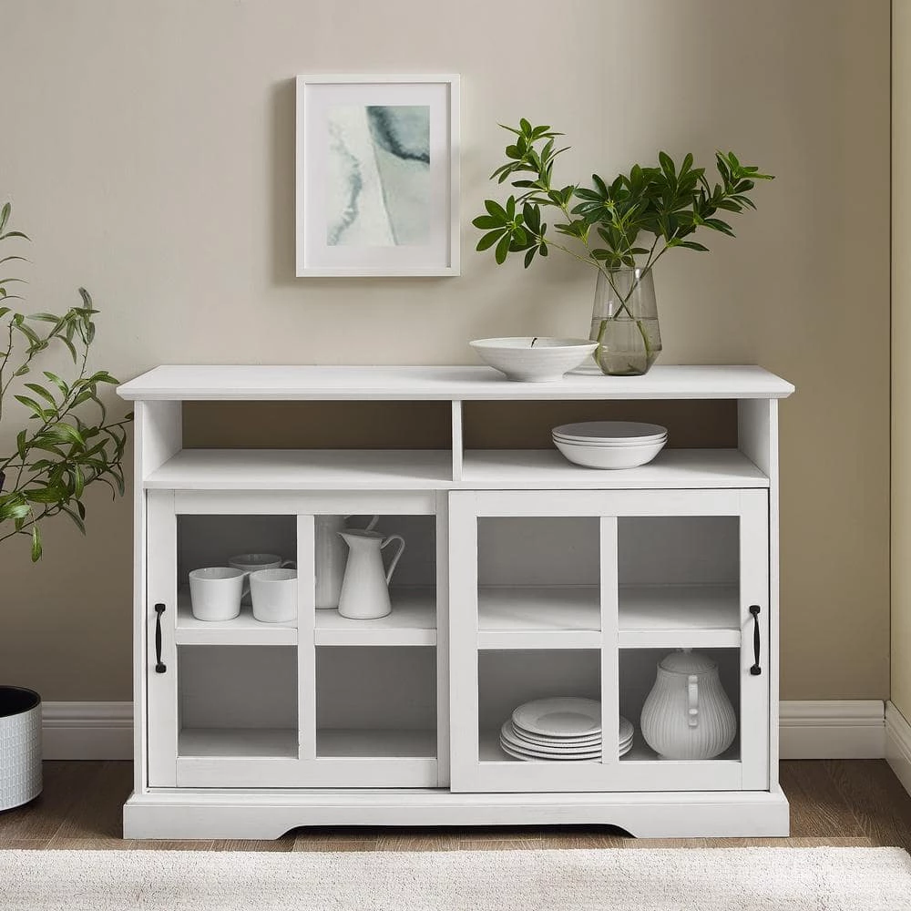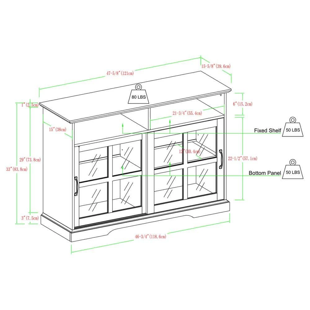 Achieve the homey vibes to make your living room the family’s favorite gathering place with this farmhouse sideboard. The traditional window pane doors provide a cozy feel while the sliding function offers a contemporary touch to this storage solution. Place media components on the two adjustable shelves for movie nights that bring everyone together with ease. You can rely on this sturdy piece because of its warp-resistant MDF wood and durable laminate build.