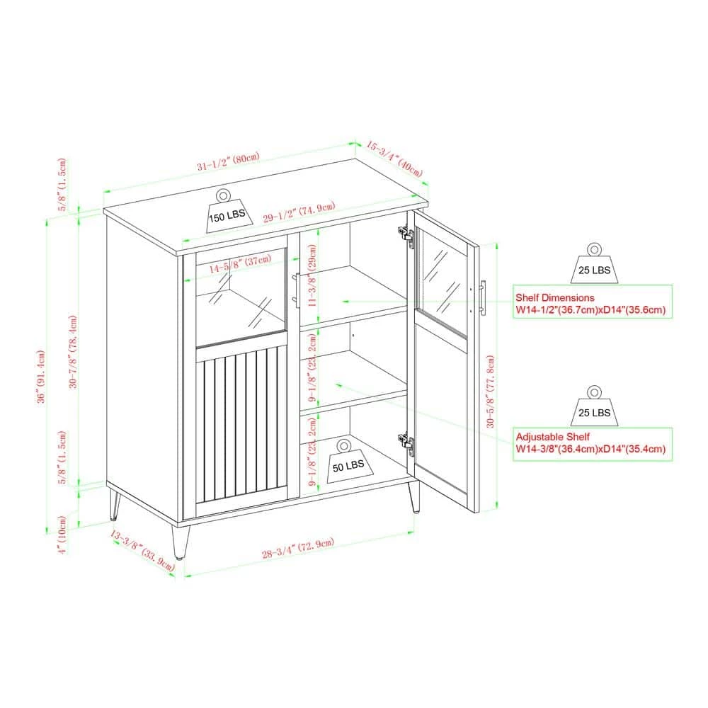 - Glass doors and 1 glass shelf made with tempered safety glass