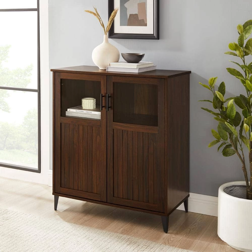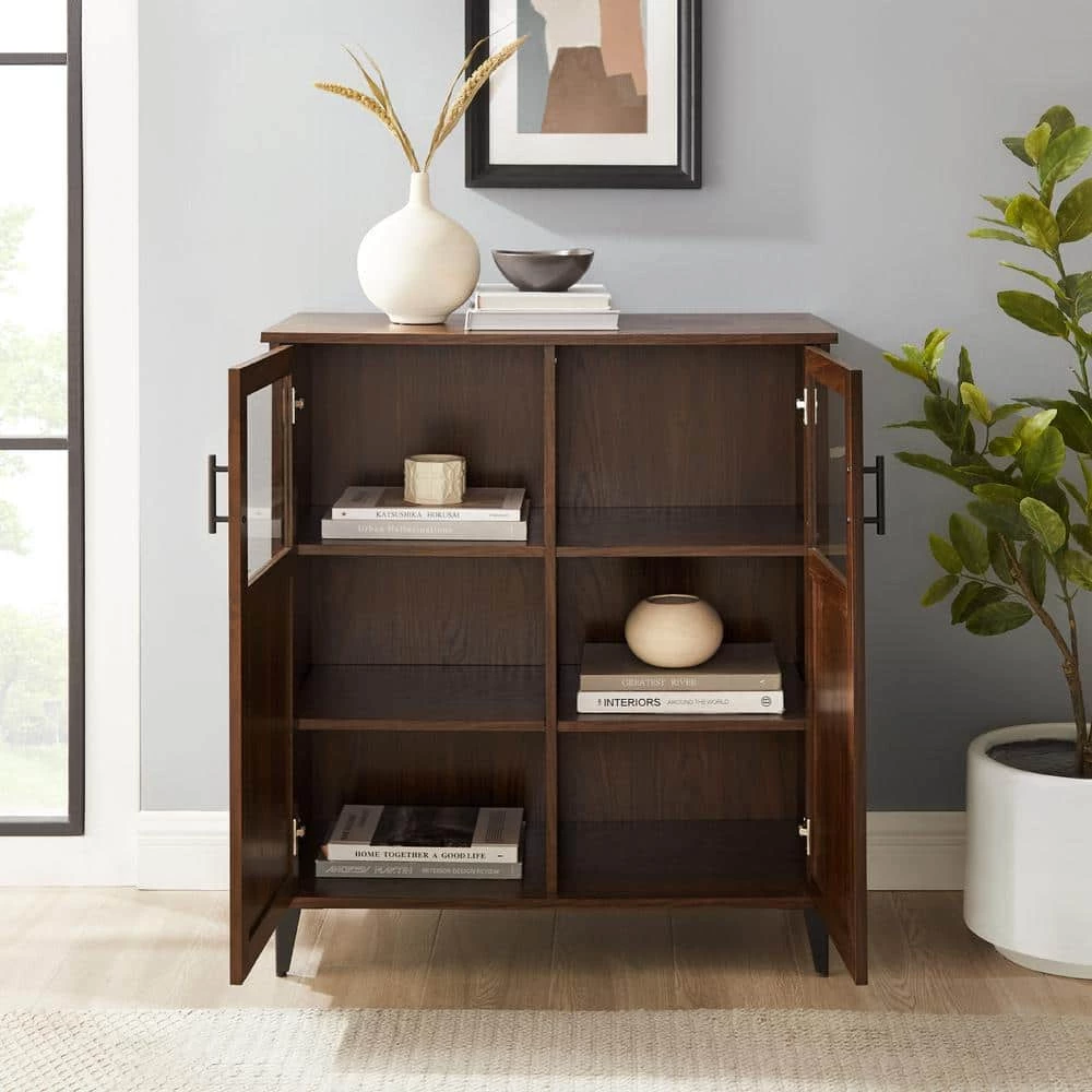 With this accent cabinet as your new storage sidekick, the possibilities are endless. A modern bar cabinet with semi-hidden closed storage. Linen storage that fits in your small home or sprawling space. Or perhaps, simply an accent piece that features your favorite decor in your home office. With two adjustable shelves on the bottom cabinet, you’ve got just enough space to store dinnerware, office essentials, or even clothing. Soft-close, glass-front doors and a single glass shelf within the cabinet sleekly showcase your most debut-worthy decor. Whether it’s hosting cocktails or displaying your everyday essentials, this contemporary cabinet can do it all.