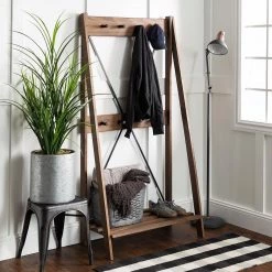 72 in. Dark Walnut Slat Door Metal and Wood Hall Tree by Welwick Designs