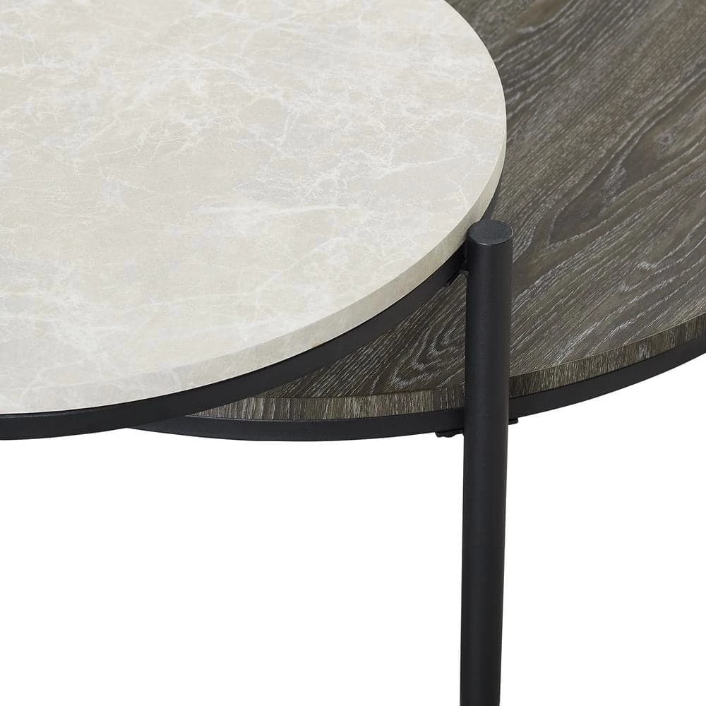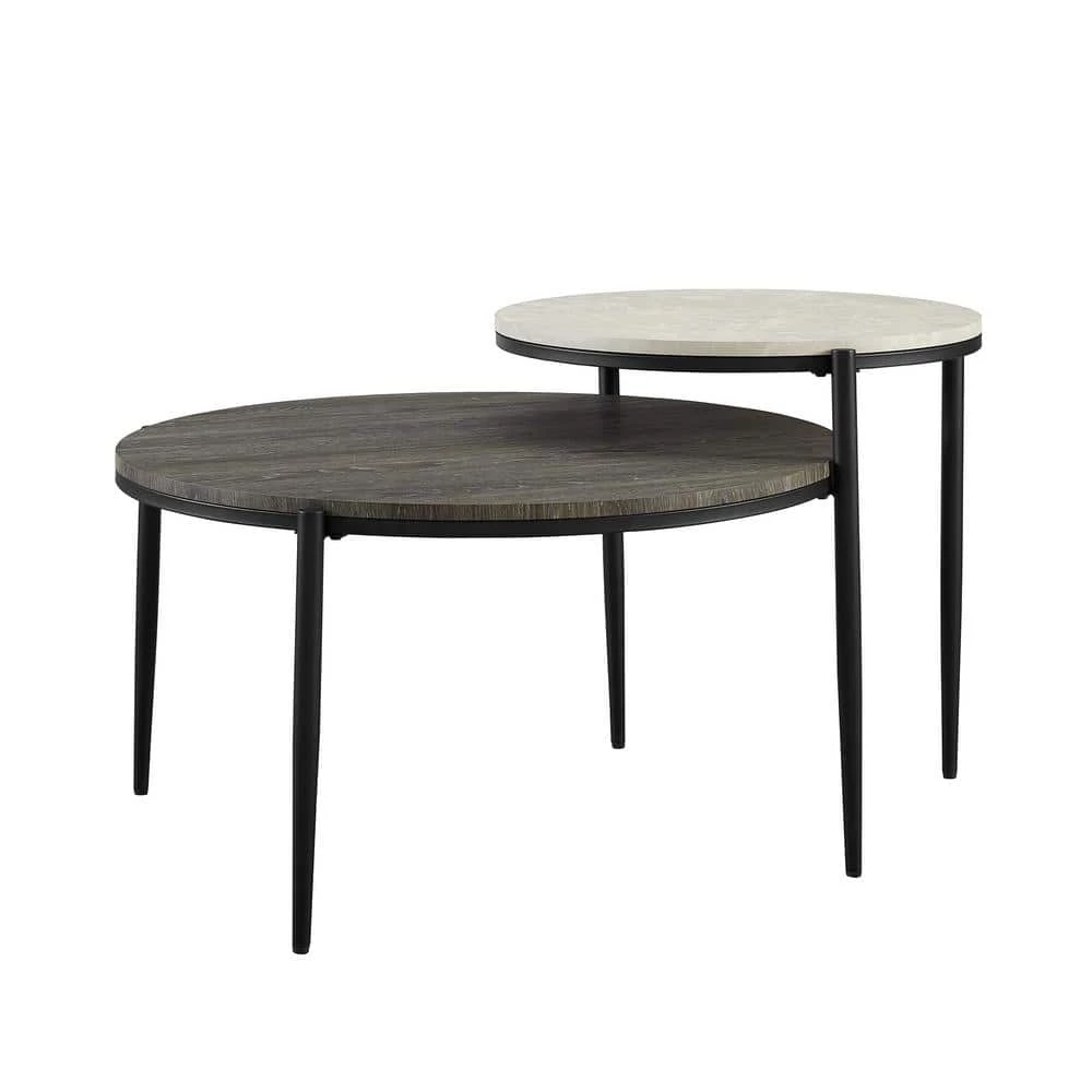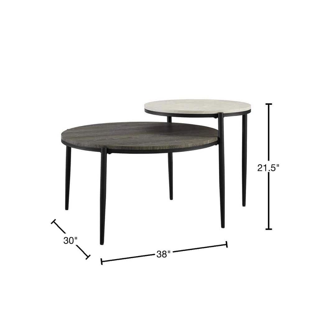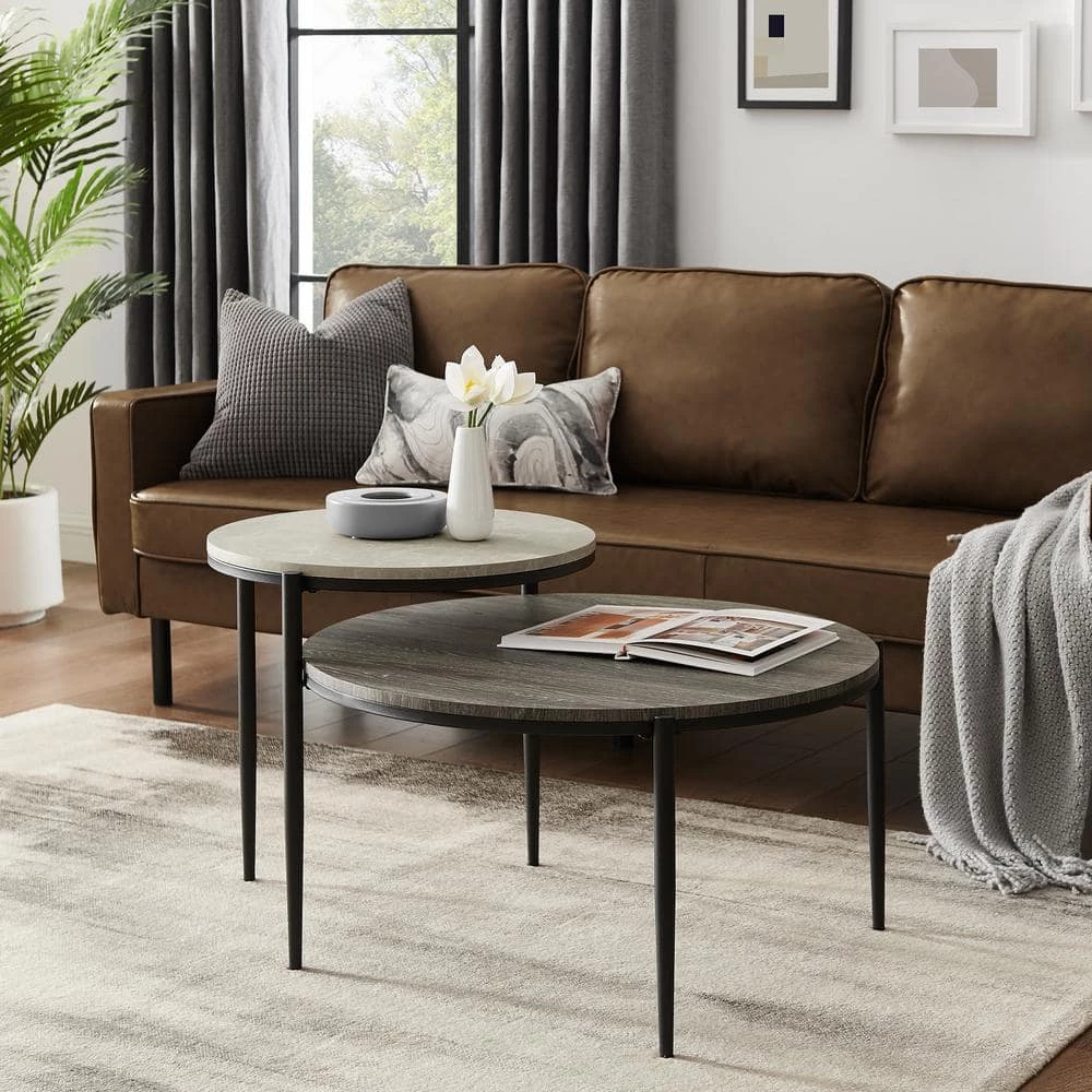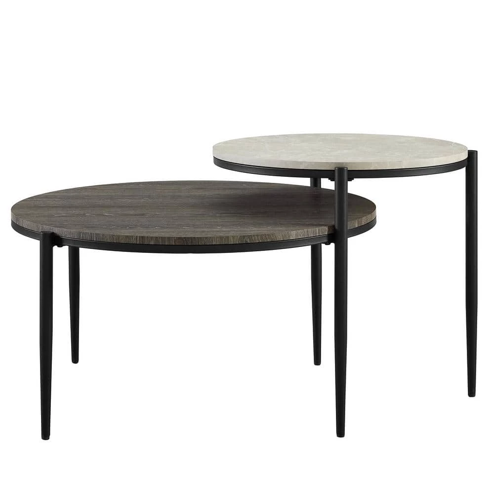 Level up your home decor with this tiered circular cocktail table. The 2-round tiers are fixed in place so you don’t have to worry about artful arrangement-it’ll always be set in a sophisticated position. Plus, the metal tapered legs incorporate a modern vibe while the capped feet protect floors. Made of powder-coated metal, warp-resistant MDF and durable laminate, this 2-tone coffee table not only has an industrial look, but also has a strong build.