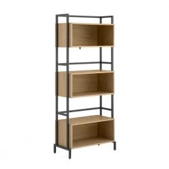 64 in. Coastal Oak/Black Wood Modern 6-Shelf Bookcase with Cubbies by Welwick Designs