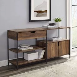 58 in. Dark Walnut 1-Drawer 2-Door Storage Shelf by Welwick Designs