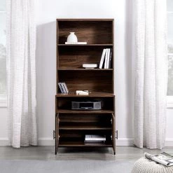 64 in. Dark Walnut Wood Modern Bookcase Hutch with Cabinet by Welwick Designs