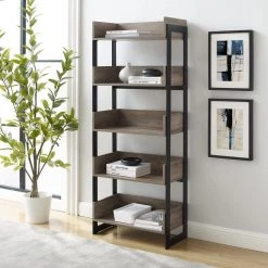 64 in. Gray Wash Wood and Metal 5-Shelf Bookcase by Welwick Designs