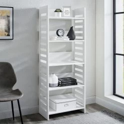 64 in. Solid White Wood Modern Industrial 5-Shelf Slatted Accent Bookcase by Welwick Designs