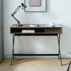 42 in. Rectangle Dark Walnut Wood and Glass X-Leg Computer Desk with 2-Cubbies by Welwick Designs