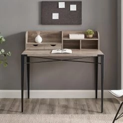 42 in. Grey Wash Rectangular 2 -Drawer Secretary Desk with Hutch by Welwick Designs