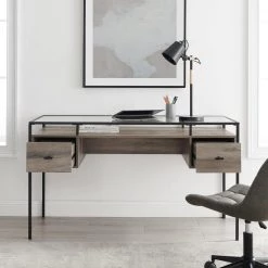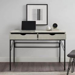 44 in. Rectangular Cerused Ash Wood and Metal Hutch Writing Desk with 2-Drawers by Welwick Designs