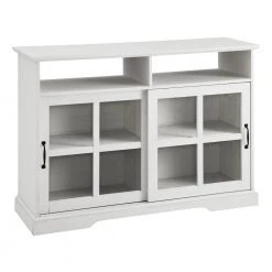Brushed White Wood and Glass Classic Sideboard with 2-Sliding Doors by Welwick Designs
