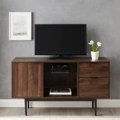 52″ Modern 2-Drawer Lifted Sideboard – Dark Walnut by Welwick Designs