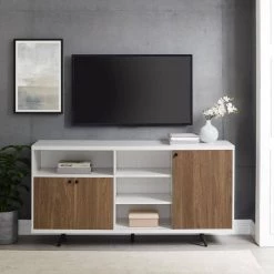 60″ 3- Door Sideboard – Solid White/English Oak by Welwick Designs