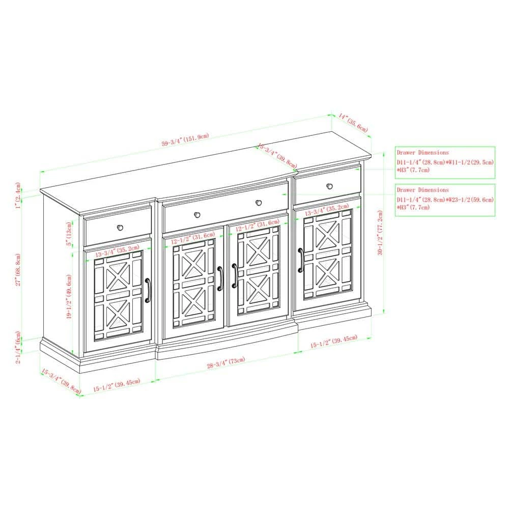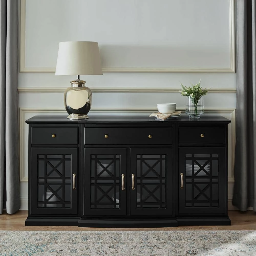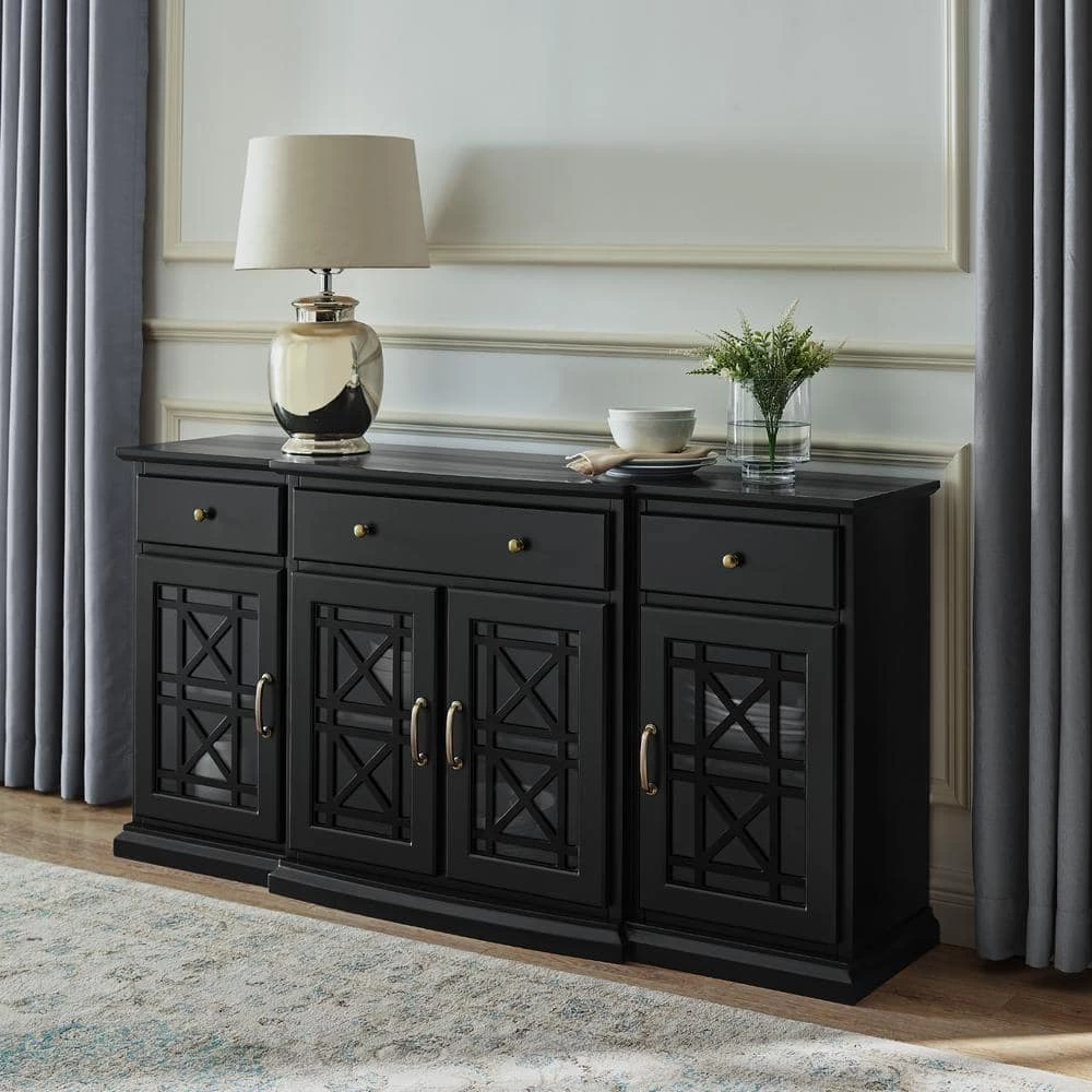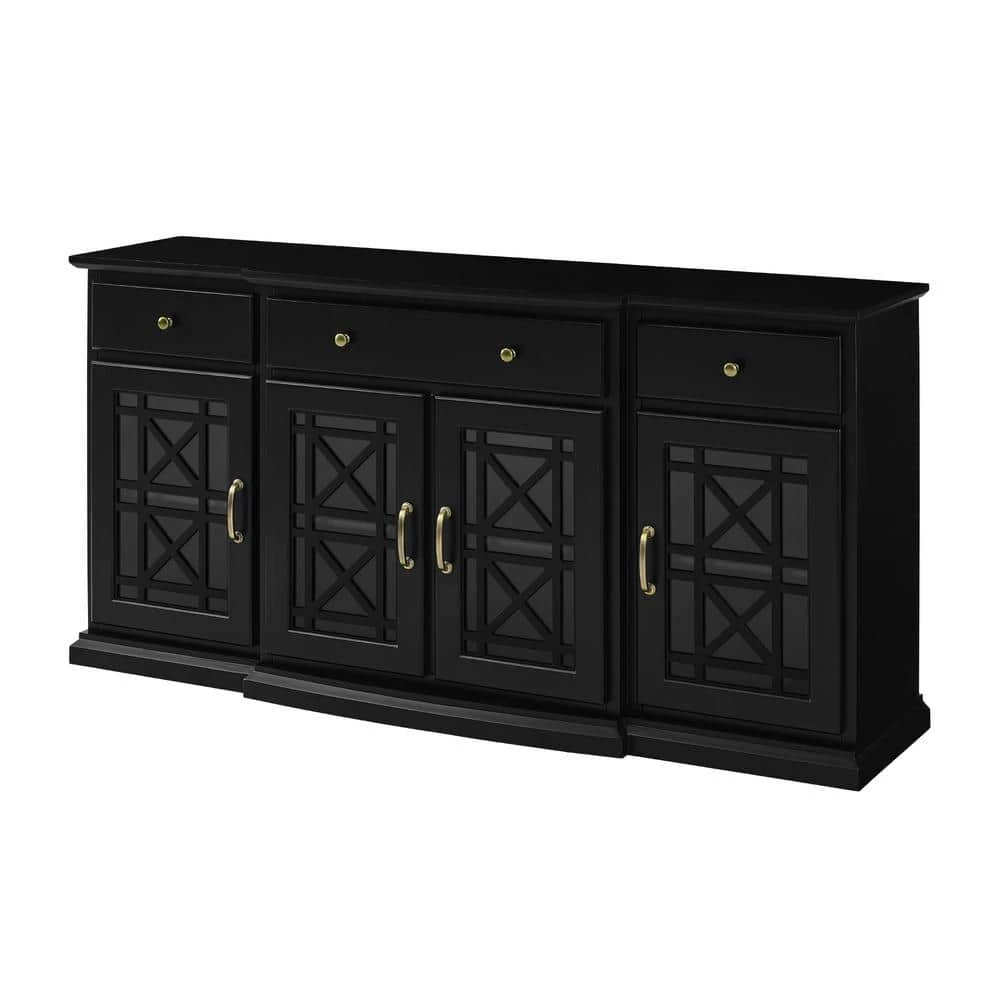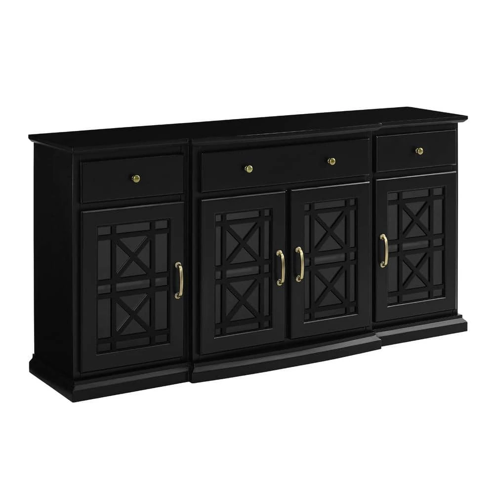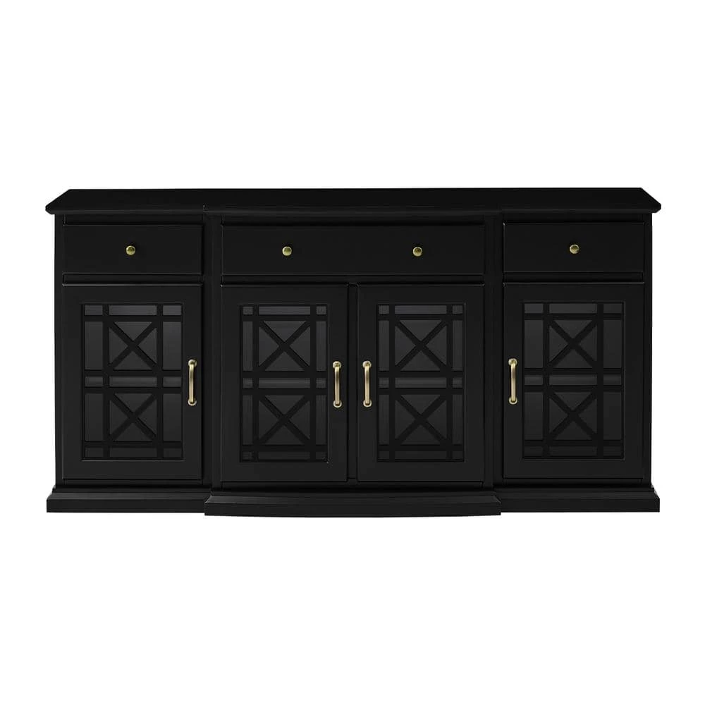 Charlie adores their versatile, 60 in. fretwork sideboard. They never knew a front tiered credenza could look so smart. Charlie loves the three drawers that run on telescoping drawer glides; such a smooth unit. The fretwork detailing on the 4-cabinet doors speak to Charlie. “Modern, traditional, farmhouse, you name it,” they whisper. “We’ll fit any style you love.” Most of all Charlie appreciates that this storage sideboard also serves as an entertainment center. Its flat top can accommodate TVs up to 65 in. and with cord management, Charlie never has to worry about messy cables. So, be like Charlie and pop this nifty model anywhere you like to fill all your organizational needs.