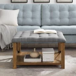 30 in. Grey Farmhouse Tufted Ottoman by Welwick Designs