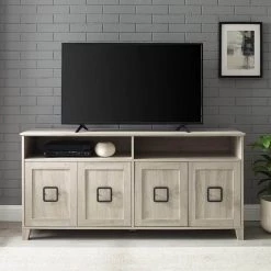 58 in. Birch Wood TV Stand with Storage Doors (Max tv size 65 in.) by Welwick Designs