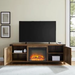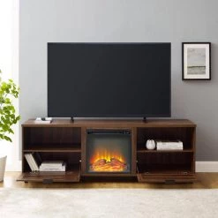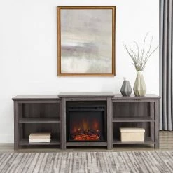 70 in. Slate Gray Composite TV Stand with Electric Fireplace (Max tv size 78 in.) by Welwick Designs
