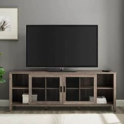 70 in. Gray Wash Composite TV Stand with Storage Doors (Max tv size 78 in.) by Welwick Designs