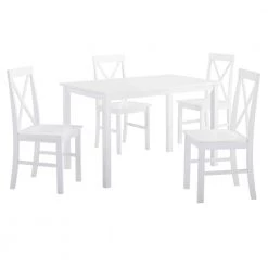 5-Piece White Solid Wood Farmhouse Dining Set by Welwick Designs